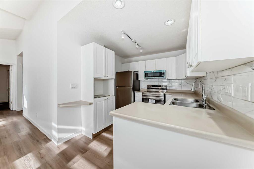 Gorgeous Updated Corner Unit in the Highly Sought After 55+ Heritage Point of Monterey Park. This beautifully updated 2-bedroom adult living bungalow villa offers style and comfort throughout. Recent upgrades include fresh paint, stunning new vinyl plank flooring, brand-new (never used) kitchen appliances, fully refreshed bathrooms, chic modern light fixtures, and elegant zebra blinds – and that’s just the beginning. The bright, open concept living and dining area features vaulted ceilings, creating an airy and welcoming space perfect for relaxing and entertaining. The kitchen offers an abundance of cabinetry, including a separate built-in station ideal for organisation or a coffee bar. The spacious primary bedroom includes a private ensuite, while both bedrooms are good sized with updated closets. Main-floor laundry adds everyday convenience. Two generous sized decks, a front deck and a larger, private deck in the back. The attached garage provides secure parking and additional storage. Heritage Point is a well maintained 40-unit complex featuring a clubhouse with two kitchens, meeting rooms, and ample space to host events and socialize with neighbours. Visitor parking is just steps away. Ideally located near shops and scenic walking paths, and a 5 minute drive to Village Square Leisure Centre.