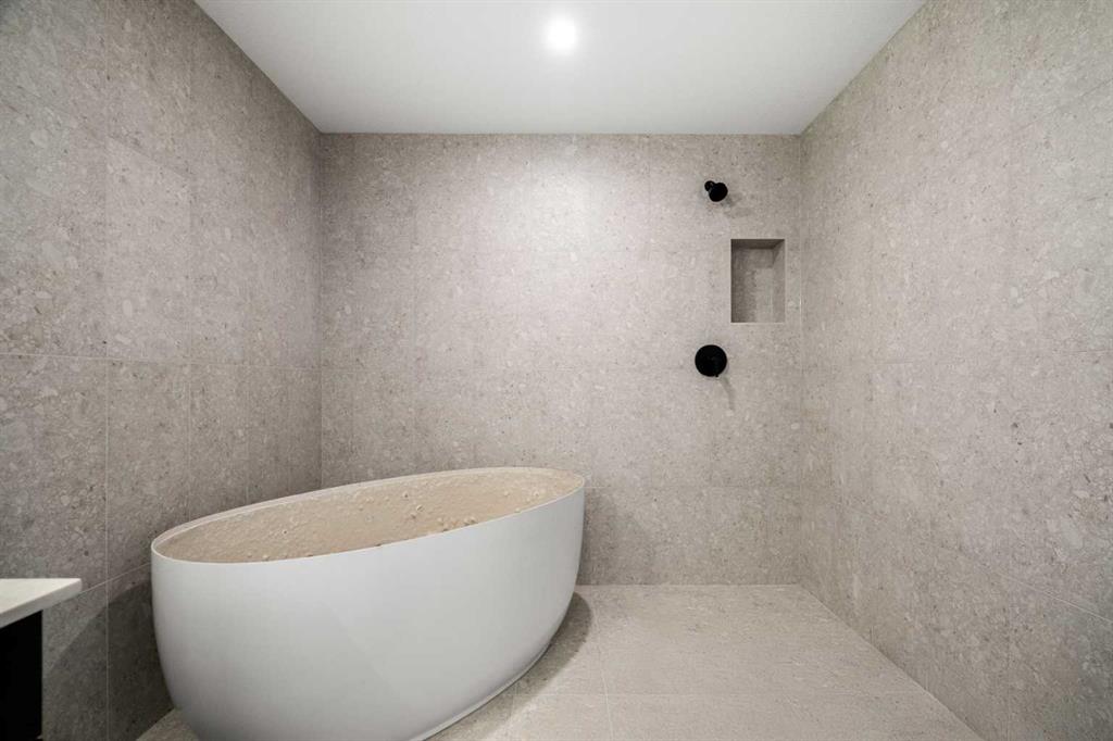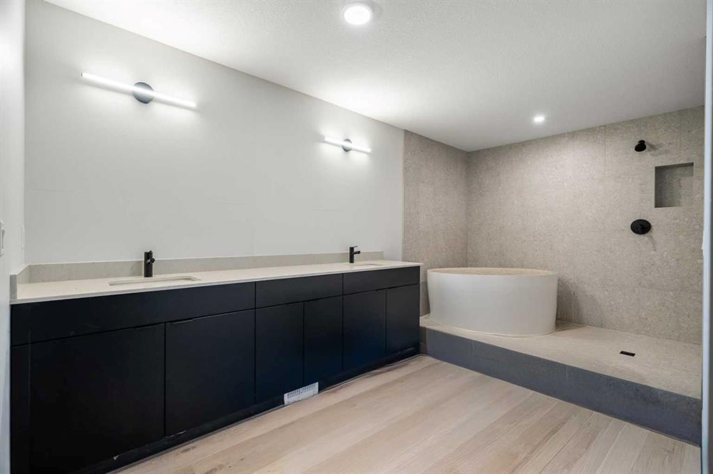 Upstairs, you’ll find two versatile secondary bedrooms that can easily serve as children’s rooms, guest suites, or stylish home offices. The luxurious primary suite is a true retreat, featuring a 5-PIECE ENSUITE with a STAND-ALONE SOAKER TUB, a 10MM CUSTOM TILE AND GLASS SHOWER, and an OVERSIZED WALK-IN CLOSET.