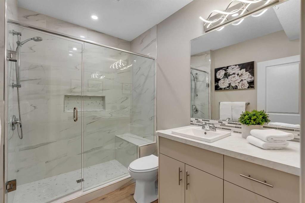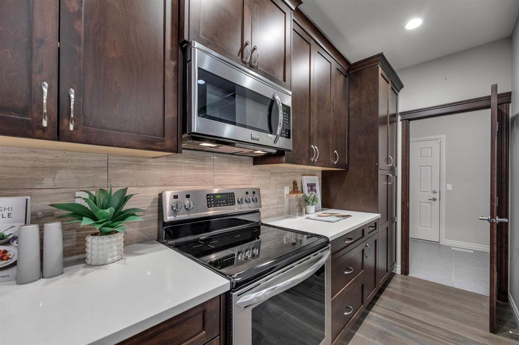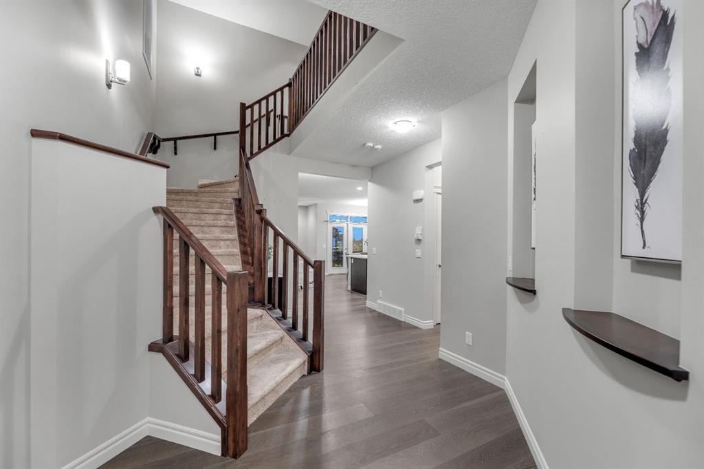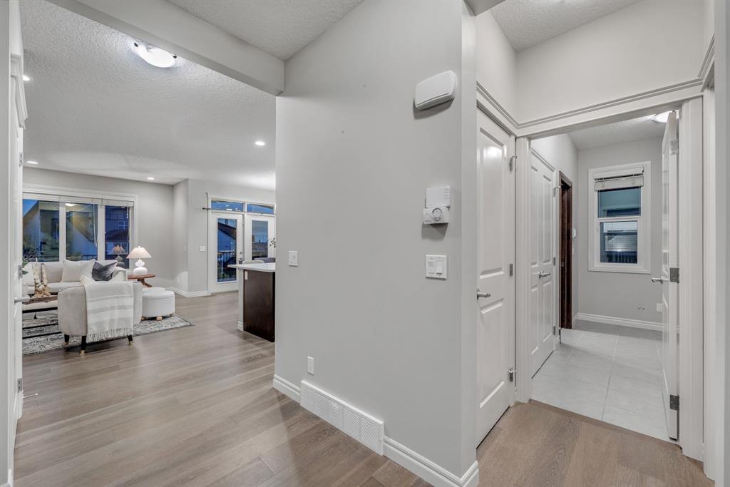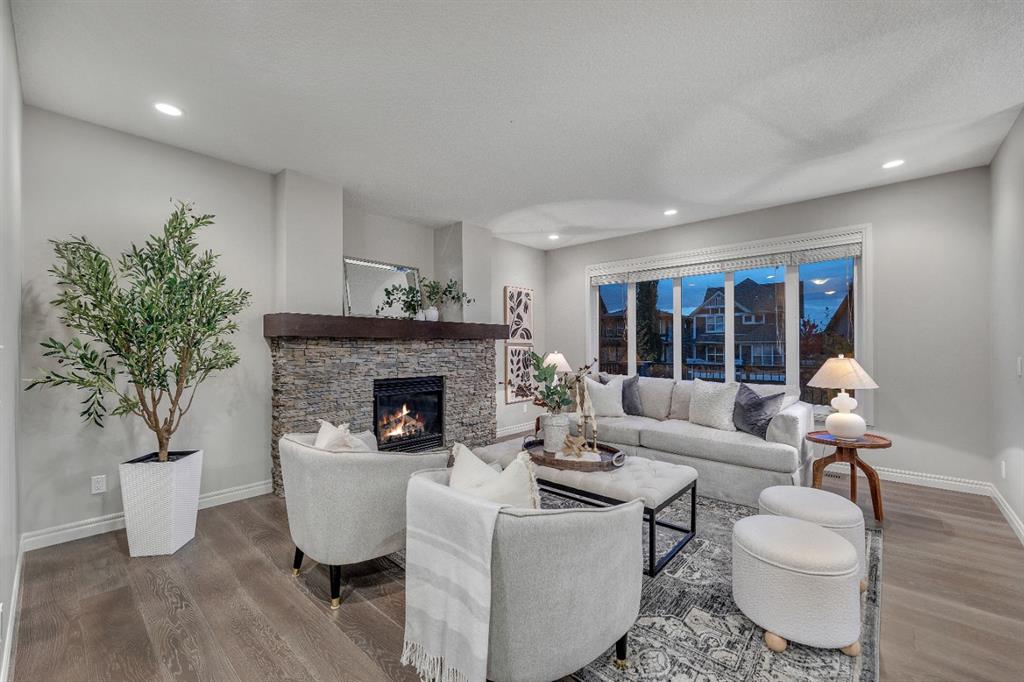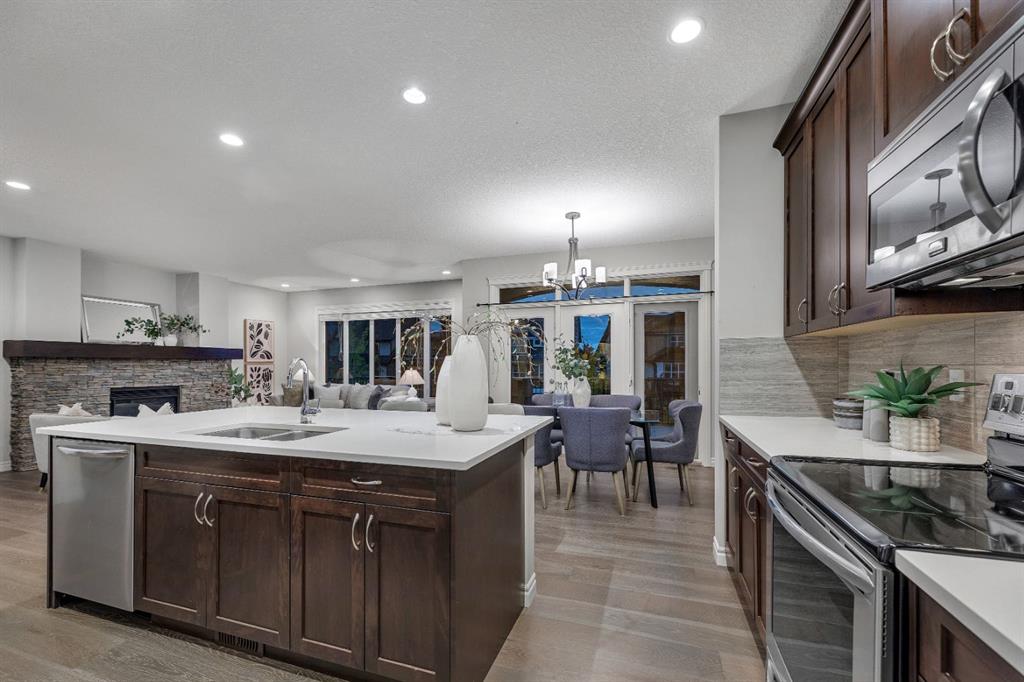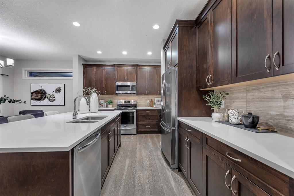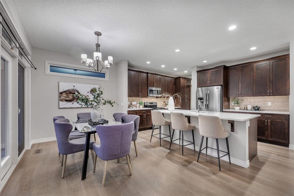 REALTOR BONUS of 5k if conditions are waived by Nov 14 – Step into this stunning 4-bedroom Trico built walkout home, offering over 3,300 sq ft of developed living space, and backing directly onto a peaceful pathway with direct access to the Mahogany wetlands—providing rare privacy and scenic views right in your own backyard. The fully fenced yard and elevated balcony make it easy to enjoy your morning coffee or take in breathtaking evening sunsets while overlooking one of the most desirable natural landscapes in the city. Inside, a grand front entry leads into a bright, open-concept main floor where expansive windows flood the kitchen, dining, and living areas with natural light. A central fireplace serves as a cozy focal point of the living room, while the kitchen features a quartz countertop island, generous counter space, and direct access to the upper balcony for effortless indoor-outdoor living. A smart walkaround layout connects seamlessly to the mudroom, attached garage, and convenient half-bath. Throughout the main floor, engineered hardwood flooring enhances the sense of flow and style. Upstairs, you’ll find a spacious bonus room ideal for a media area or playroom, along with two additional bedrooms that share a full bath. The standout is the luxurious primary retreat, complete with high tray ceilings, a spa-inspired ensuite featuring a soaker tub, walk-in shower, double vanity, and a large walk-in closet. The fully finished walkout basement has been newly developed with modern style ~ which offers even more living space, including another generous great room with direct access to the backyard and the serene private pathway beyond which takes you through the various nature setting wetlands. You will also find a spacious additional bedroom with outdoor access, a 3-piece bathroom, and a built-in bar area—perfect for entertaining. For further comfort and convenience, the home has dual air-conditioning, perfect for year-round comfort! Located in the vibrant lake community of Mahogany, you can enjoy exclusive access to beaches, swimming, paddleboarding, and year-round recreation with skating as a winter seasonal hi light. With top-rated schools, shops, restaurants, and a lively community center nearby, Mahogany offers the perfect blend of nature, luxury, and convenience.
