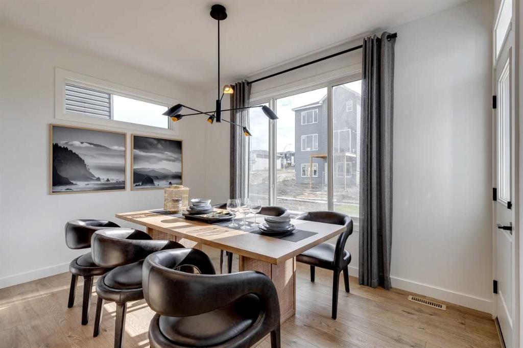 The chef-inspired kitchen boasts built-in stainless steel appliances, a gas cooktop, waterfall-edge island, and a walk-through pantry for added convenience. LVP flooring flows throughout the main level, which includes a mudroom with walk-in closet and a flex room behind elegant French doors. The great room offers a cozy gas fireplace with mantle, while the large front bonus room is filled with natural light. Unwind in the 5-piece ensuite featuring a soaker tub, walk-in shower, quartz countertops, undermount sinks, and thoughtful storage with banks of drawers in both bathrooms. This energy-efficient home is Built Green certified and includes triple-pane windows, a high-efficiency furnace, and a solar chase for a solar-ready setup. With blower door testing that can may be eligible for up to 25% mortgage insurance savings, plus an electric car charger rough-in, it’s designed for sustainable, future-forward living.