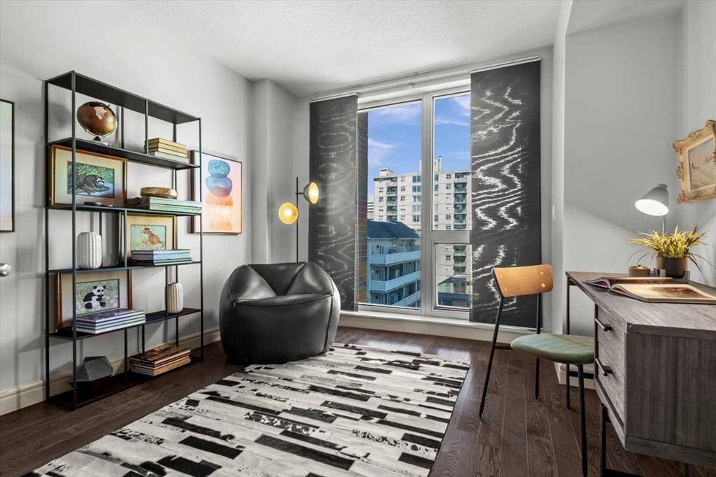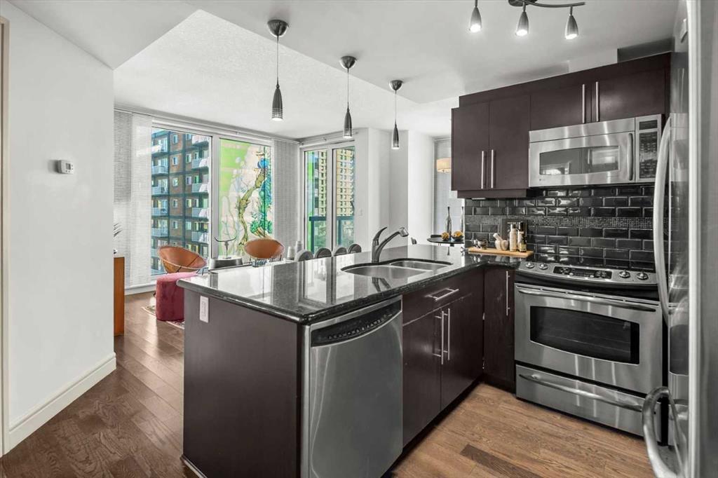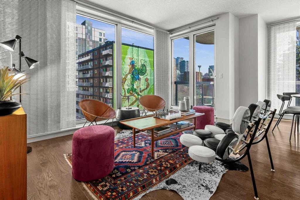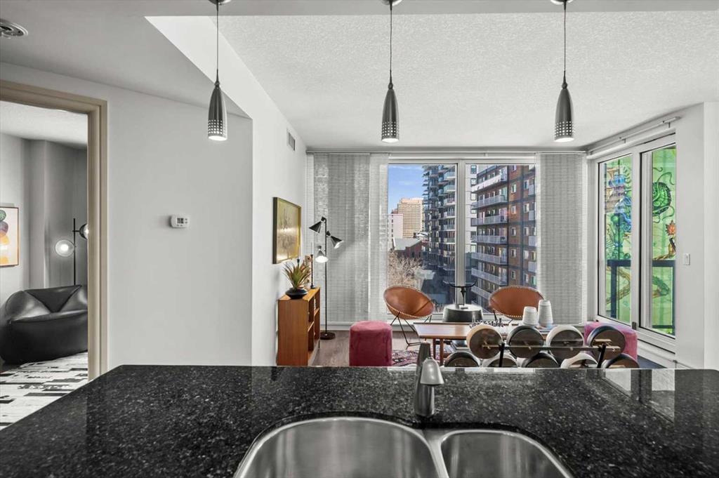 Bright, quiet, and impeccably positioned on the 5th floor, this nearly 900 sq ft corner suite offers a refined urban lifestyle in one of Calgary’s most sought-after inner-city locations. Featuring two bedrooms and two full bathrooms, the home strikes a rare balance between downtown energy and everyday tranquility, sitting just steps from the excitement of 17th Avenue while staying thoughtfully set back from the bustle of city life. Living here means embracing a truly walkable lifestyle. Start your mornings with coffee from a nearby café, pick up groceries or fresh produce just around the corner, or head to your favourite yoga studio or boutique gym, all without ever needing your car. Commuting is effortless, whether you work downtown, attend meetings across the core, or rely on nearby transit routes for easy access throughout the city. In the evenings, stroll to award-winning restaurants, lively patios, cocktail lounges, and local boutiques, then return home to a peaceful retreat elevated above the street. Inside, the open-concept layout is flooded with natural light thanks to floor-to-ceiling windows and a desirable corner orientation. Hardwood floors, central air conditioning and heating, in-suite laundry, and a thoughtful split-bedroom design create a space that feels both stylish and highly functional. The primary bedroom offers excellent privacy with a generous closet and a well-appointed ensuite, while the second bedroom and full bathroom are ideally positioned for guests, roommates, or a dedicated home office. Step onto the private balcony off the living room and enjoy your own outdoor space, complete with a gas BBQ hookup…perfect for relaxed evenings, summer grilling, or entertaining friends before heading out on 17th Ave. The home also includes titled underground parking and a separate storage locker, adding everyday convenience and peace of mind. The Montana is a standout building in Calgary’s urban landscape, known for its timeless architectural design and quality concrete construction that provides superior soundproofing and long-term value. Residents enjoy a low-maintenance, luxury lifestyle with a 7-day concierge, a newly updated fitness centre, and condominium fees that include heat, water, insurance, and more. Beautifully maintained and move-in ready, this residence is ideal for professionals, downsizing, or urban enthusiasts seeking sophisticated downtown living without compromise. This is a home that truly complements the vibrant, connected lifestyle that downtown Calgary is known for.