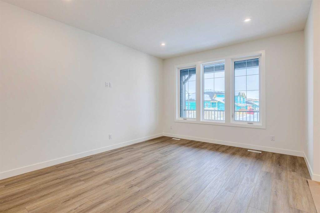 Price Adjusted, Move in Before Christmas! – Contemporary design meets everyday ease in this large 1,694 ft² duplex by Broadview Homes in Harmony. The three-bedroom, two-and-a-half-bath design showcases a bright, open plan that connects the kitchen, dining, and living areas for easy everyday living and entertaining. Quality finishes run throughout, with an appliance package that includes a stainless-steel gas range, dishwasher, hood fan, and built-in microwave. Upstairs, the private primary bedroom features a walk-in closet and a well-appointed ensuite, joined by two additional bedrooms and a second full bath. The unfinished basement is ready for your personal touches and is roughed-in for a future bathroom. Step outside to a large rear deck that extends your living space for summer relaxation or hosting. Set within vibrant Harmony, with access to lakes, parks, golf, pathways, and world-class amenities, this home offers an exceptional lifestyle in one of Alberta’s most desirable communities. Photos are representative.