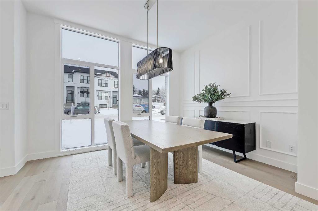 Welcome to a home where contemporary elegance meets everyday comfort in the heart of MONTGOMERY. Situated on a quiet street in this sought-after inner-city community, this stunning new build is designed with both style and function in mind, offering a thoughtfully crafted layout including a WALKOUT BASEMENT w/ COVERED PATIO SPACE, high-end finishes, and incredible natural light throughout. From the moment you step inside, the open-concept main floor makes an immediate impression. You’re greeted by a lovely glass wall in the front foyer, looking into the main floor home office with a built-in desk. The heart of the home is the designer kitchen—a perfect blend of modern aesthetics and practicality. A waterfall island anchors the space, complemented by custom cabinetry, quartz countertops, and top-tier appliances, including a gas range and French door fridge. A built-in pantry offers storage space, while a built-in coffee counter adds more cabinetry and room for small appliances. The front dining area is spacious enough for large gatherings, while the living room is designed for relaxation and entertaining, featuring a sleek gas fireplace and oversized patio doors that open to the upper deck and SOUTHWEST-FACING BACKYARD. A stylish built-in bench and hooks in the mudroom provide everyday convenience, and a chic powder room completes the main level. Upstairs, the primary suite is stylishly finished with a tray ceiling and a spacious walk-in closet with custom built-ins. The generous ensuite is a masterpiece, featuring a freestanding soaker tub, a walk-in shower with a bench, dual vanities, and elegant finishes. Two additional bedrooms each have built-in closets, while a beautifully finished main bath adds even more functionality along with the full laundry room with tile floor and built-in cabinetry. The legal 2-BED LOWER SUITE is a fully independent living space featuring a modern kitchen with full-height cabinetry, quartz countertops, and a stainless steel appliance package. The thoughtful layout includes a bright living room, two spacious bedrooms with built-in closets, a stylish 4-piece bath, dedicated laundry, and a private backyard entrance. The highlight of this space, though, is the full WALKOUT PATIO – the covered space is perfect for enjoying the outdoors year-round, with the additional convenience of a fully private entrance! Located in Montgomery, this home offers an unbeatable lifestyle. Enjoy quick access to the Bow River pathways, Shouldice Park, and Winsport, perfect for outdoor enthusiasts. The community is home to fantastic local restaurants, trendy coffee shops, and boutique shopping while offering easy access to Market Mall, Foothills Hospital, the University of Calgary, and major roadways for a seamless commute. Don’t miss your chance to own this beautifully designed home in one of Calgary’s most desirable neighbourhoods! *Photos from show suite finishes may vary*