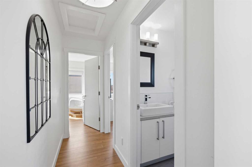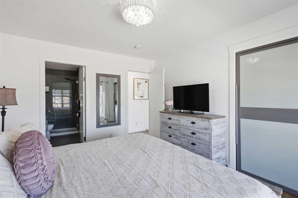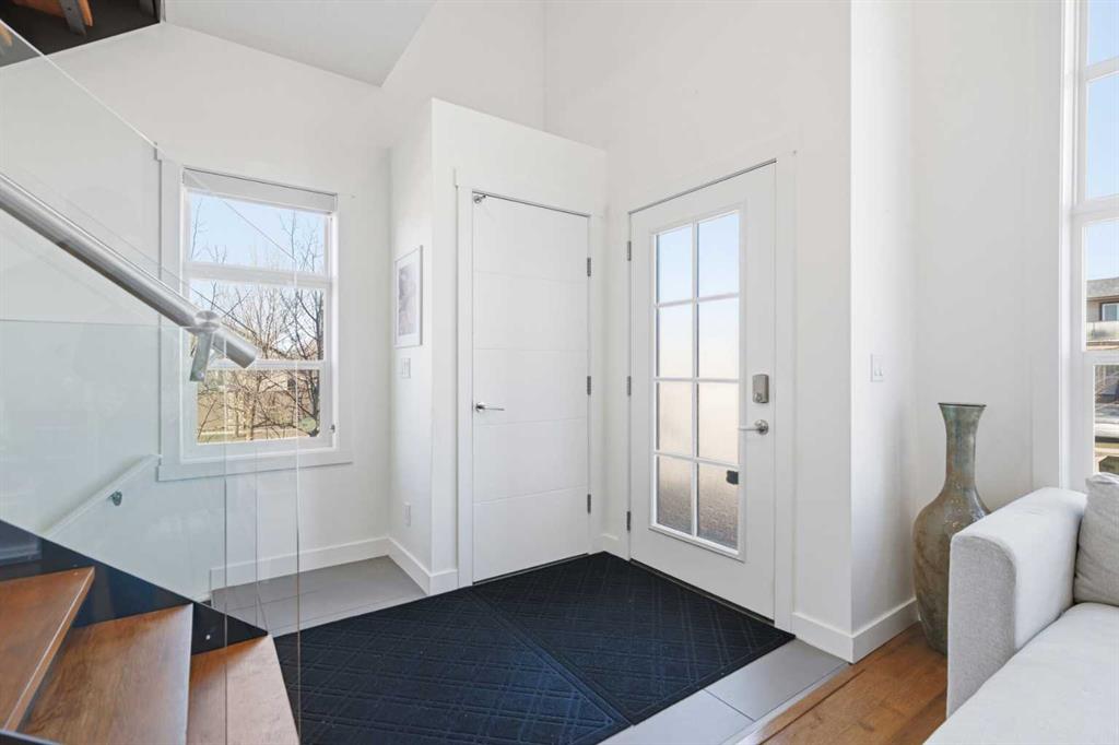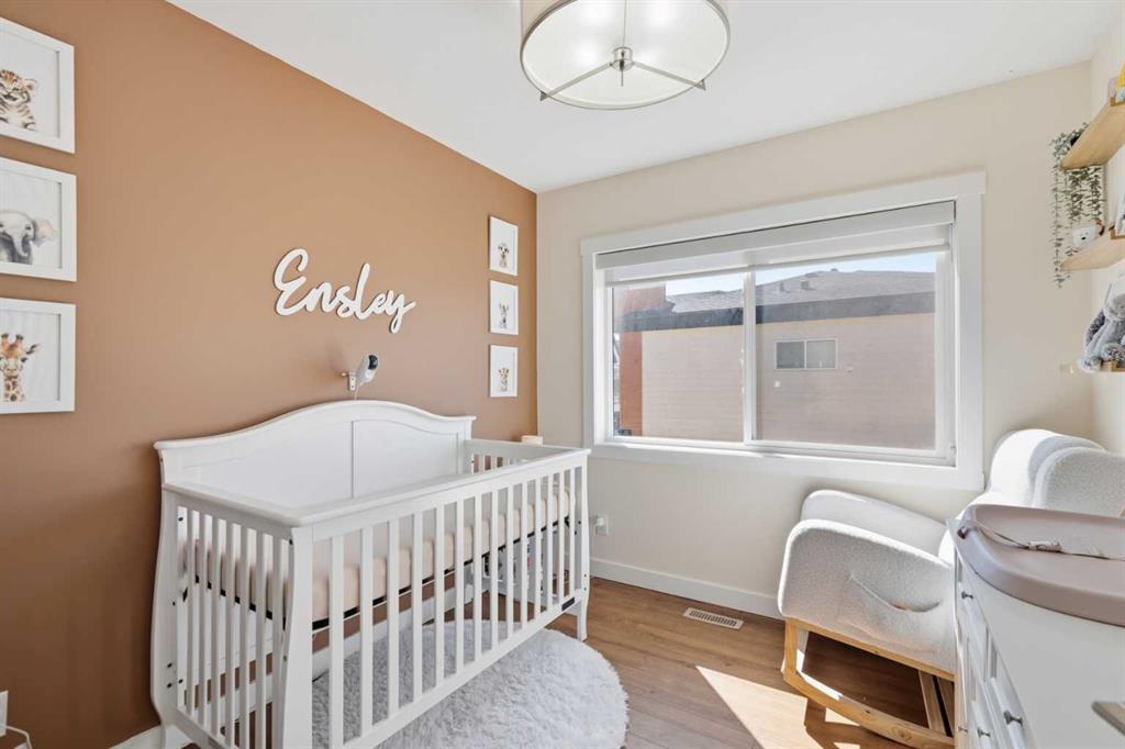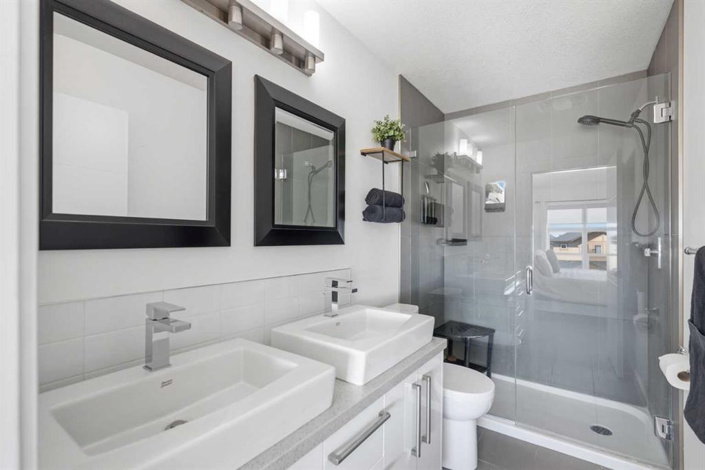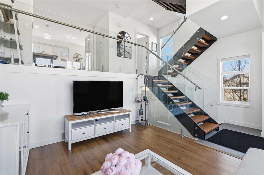 **OPEN HOUSE SAT APR 25TH, 1PM-3PM** STUNNING HIGH-END TOWNHOME | RARE END UNIT | SOUTH BALCONY EXPOSURE! Don’t miss out on this opportunity to own this gorgeous, LUXURY-LEVEL home in the highly sought-after community of Bayside! This exceptional end unit stands out with its low-maintenance exterior featuring hardy board siding & stone, and an interior that defines modern elegance with custom finishings throughout. Highlights of the upscale design include a modern CHEF’S KITCHEN with white flush cabinetry | sleek QUARTZ counters | SS appliances | and a gas range. The home is completely CARPETLESS and features a stunning modern white paint theme throughout, accented by architectural masterpieces like steel open risers and tempered glass railings. You will be wowed by the 16ft living room ceilings and the custom tile-to-ceiling fireplace, all framed by massive windows and extra side glass that flood the entire space with an excess of natural light. Walk into the bright and spacious main level where the open-concept design, perfect for entertaining. Go upstairs to the kitchen and dining areas, where you will have access to the large balcony, ideal for a BBQ and a sitting table to enjoy those summer evenings. Upstairs you will discover the impressive 3-bedroom layout, including a massive primary bedroom with a dual-sink ensuite bath, along with another full bathroom and the added convenience of upper-level laundry. The professionally finished basement offers a large flex area and another full bathroom, providing the perfect space for a home gym, office, or media room. Bayside has so much to offer with conveniences all around, including quick access to schools, local shopping, groceries, and the beautiful community canals and water features. You are only steps away from parks and extensive pathway systems, making this the perfect retreat in a serene suburban setting. House Extras Include: Newer Garage Door ($4,000 value), a NEW Microwave Hood Fan, an A/C rough-in, and Custom Window Coverings throughout. This home shows 10/10 and is a rare find in a prime location—come check it out before it’s gone!