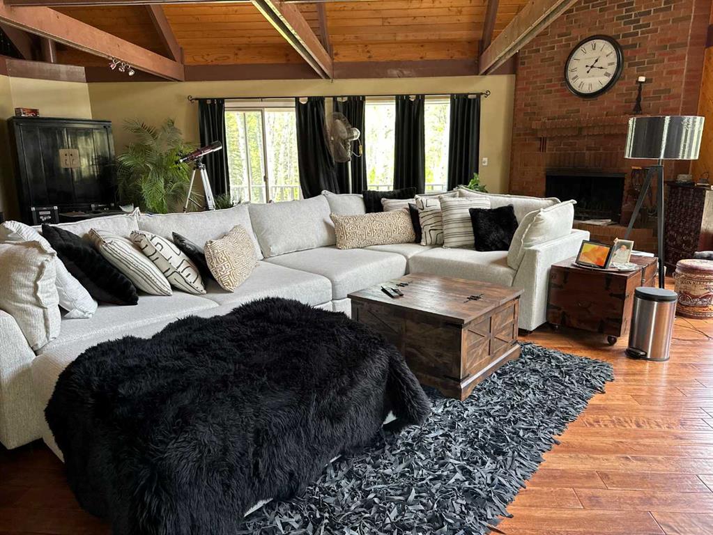 Experience ultimate privacy and serenity at this exceptional acreage in Water Valley. Nestled in a secluded setting just 30 minutes from Cochrane & Airdrie. This very private treed acreage is a mix of forested areas and fenced pastureland and open spaces. Located just 30 minutes from Cochrane, this one-of-a-kind acreage is ready for those seeking space, privacy, and direct access to the outdoors The 1.5 Story home offers over 2600 sq/ft of living space with 3 bedrooms and 2 baths, including a stunning Master loft bedroom with vaulted ceilings, ensuite and sitting area. The huge Living room features Open Beam Vaulted Ceiling, cozy up to the large wood burning fireplace on those cool winter nights or go out to your beautiful west facing deck on those warm summer days. This room also features, new hardwood flooring, and lots of windows. The Country kitchen has lots of room for those family gatherings with upgraded appliance lots of cabinetry, large eating area and opens to a large, enclosed deck. The basement is partly finished with a large Family room, Storage room, and laundry room. A new water well was drilled four year ago and supplies the home with over 10 gallons of water per minute. There is an Oversized Double Detached Garage/shop, a fenced dog kennel, chicken coup and a 40×60 Barn/shop that has electricity, water installed with natural gas available. The road from the house to the Barn has been paved. New shingles were put on the House, Barn, Garage and Shed. You will find this property enchanting. Please don’t let this one slip away. Call today to view!