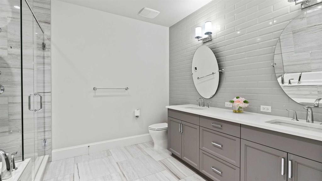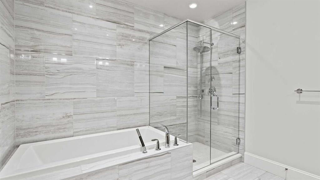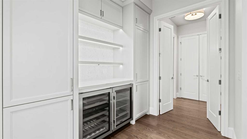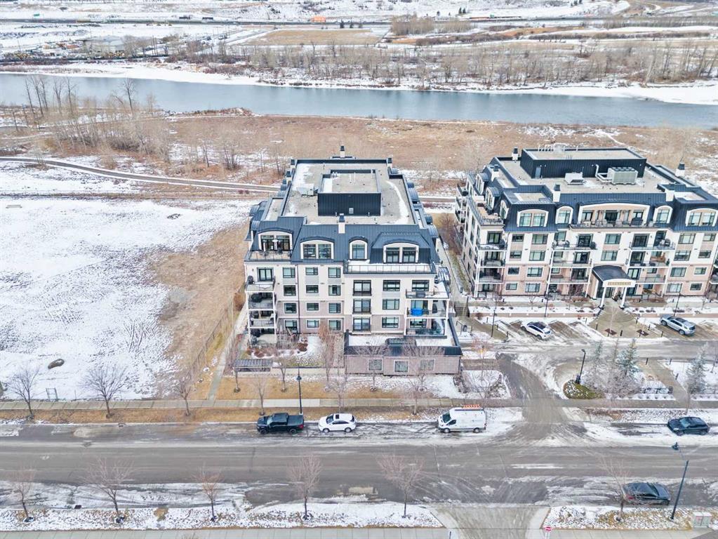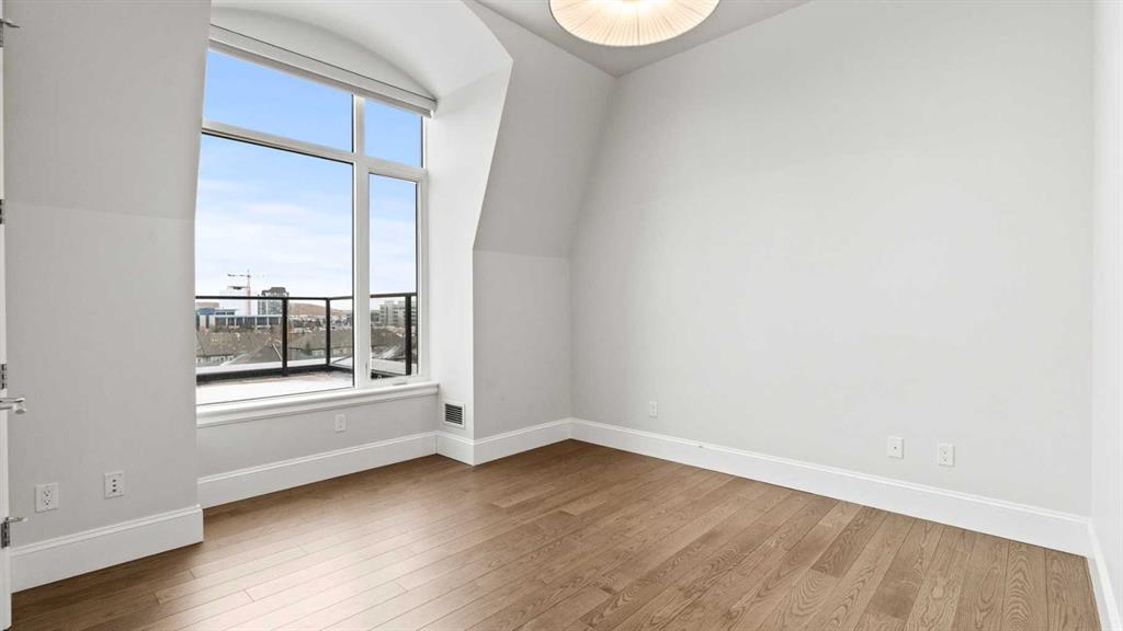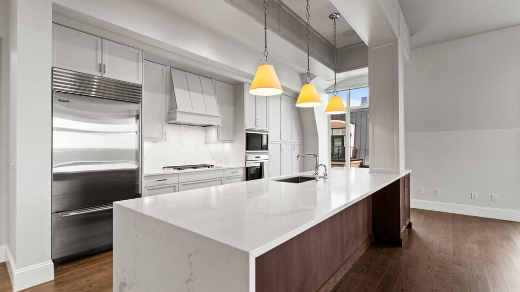 Penthouse living reaches a new level of sophistication in this exceptional residence at the prestigious, concrete-built Champagne. Perched high above it all, this east-facing penthouse spans 2,041 square feet of impeccably curated living space, framed by dramatic arched windows, double sliding patio doors, and two private outdoor spaces, including an east-facing rooftop balcony, that welcome in the morning sun and serene city views. Square footage is based on RMS measurements; original builder plans indicate a total area of approximately 2,280 square feet and are available for reference. Designed for those who appreciate timeless quality and uncompromising standards, the home showcases wide-plank hardwood flooring, 10-foot ceilings, and 8-foot interior doors, creating an immediate sense of volume and refinement. The expansive open-concept living and dining areas are flooded with natural light and seamlessly extend outdoors—ideal for both elegant entertaining and quiet mornings overlooking the skyline. At the heart of the home, the chef’s kitchen is a statement of form and function, appointed with Sub-Zero and Wolf appliances, premium cabinetry, and refined finishes that cater effortlessly to both everyday living and upscale hosting. Every detail has been considered, including Hunter Douglas powered blinds, allowing light and privacy to be adjusted at the touch of a button. The primary retreat is generously proportioned and serene, offering space for a king-sized bedroom suite and sitting area, while the ensuite bath delivers a spa-like experience worthy of a luxury hotel. A second bedroom, equally well-appointed, provides comfort and privacy for guests or family. This penthouse includes two oversized titled underground parking stalls, a rare and valuable convenience, along with the peace of mind that comes with Champagne’s reputation for exceptional maintenance and concrete construction. Champagne offers a refined, pet-friendly lifestyle with amenities such as a two-bay car wash, secure bike storage, and ample visitor parking. Just steps from the Bow River pathway system, Carburn Park, Sue Higgins Park, and the heart of Quarry Park—with its executive YMCA, dining, and services—this location balances tranquility with connectivity. Quick access to major routes ensures effortless commuting. This is not simply a condo—it is a penthouse residence for the discerning buyer who values space, privacy, and understated luxury.