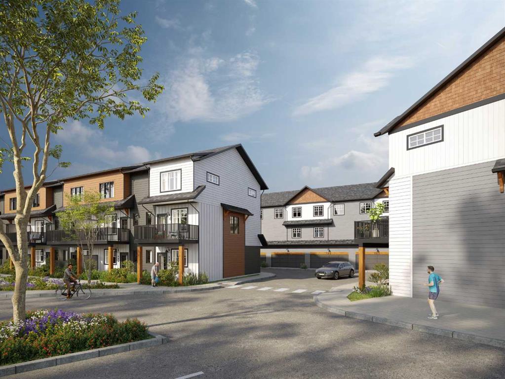 StreetSide proudly presents this highly desired interior-unit townhome that offers a sophisticated blend of expansive living space and elegant modern finishes. Designed with versatility in mind, the residence features four spacious bedrooms—including a convenient lower level bedroom ideal for guests or a home office—and two and a half well appointed bathrooms. The heart of the home is an open-concept main floor that flows seamlessly onto a private balcony, perfect for indoor-outdoor entertaining. Culinary enthusiasts will appreciate the chef-inspired kitchen, which comes standard with modern white slab-style cabinetry, a full bank of storage drawers, polished white quartz countertops, and premium stainless steel appliances. The interior aesthetic is defined by contemporary durability, featuring luxury vinyl flooring throughout the primary areas and premium 8lb underlay carpet for added comfort on the stairs and upper level. Practicality meets luxury with a dedicated upper-level laundry room and an attached double car garage. Located in the vibrant community of Hotchkiss, where nature takes centre stage by boasting 80+ combined acres of green space and wetlands, providing a scenic backdrop for modern living. Enjoy proximity to Seton’s vibrant retail district, world-class healthcare, and easy highway access. As the community grows to include its own school and daycare, Hotchkiss remains the premier choice for those seeking a balanced, well-connected lifestyle. Please note that photos used are renderings.
