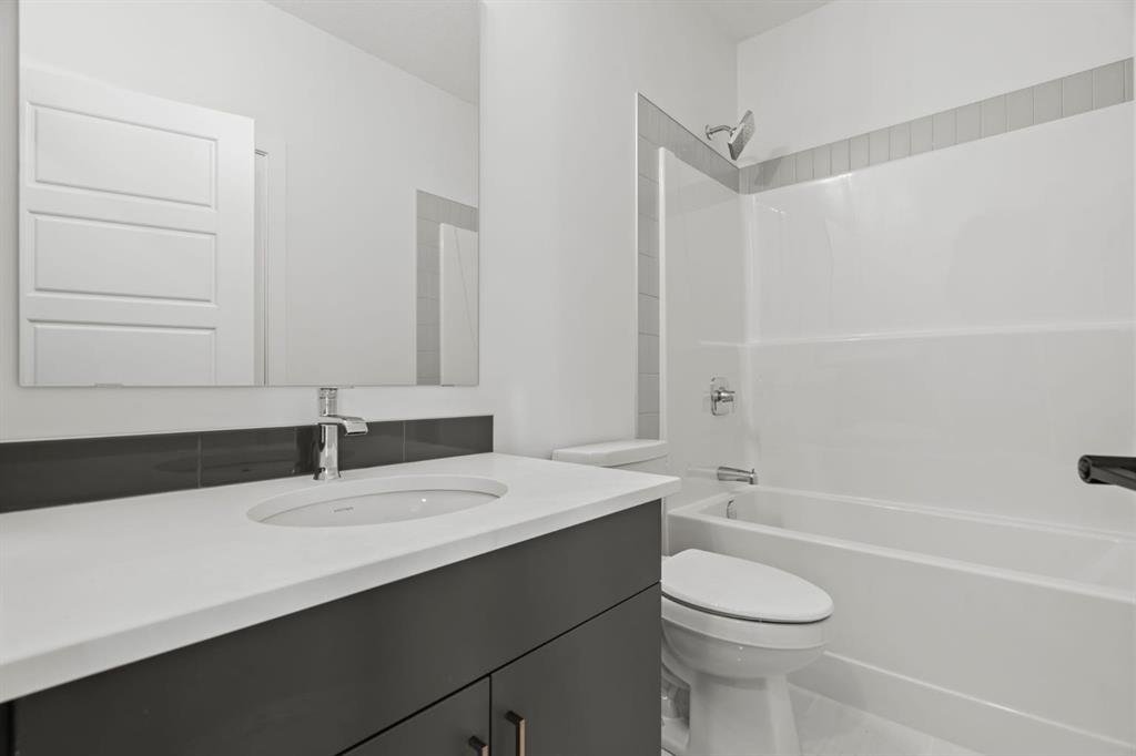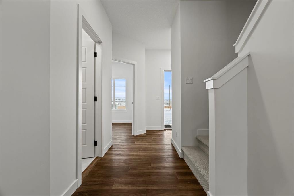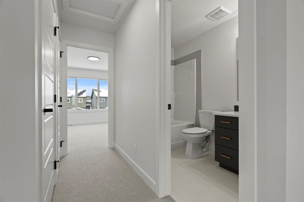 Secondary bedrooms are generously sized with large windows and ample closet space, complemented by a well-appointed main bathroom finished with quartz countertops and contemporary fixtures. Convenient upper-level laundry adds everyday practicality. This home is also equipped with a full smart-home package, including a programmable thermostat, Ring video doorbell, smart front door lock, and motion-activated switches—all controlled through an Amazon Alexa touchscreen hub. With upscale finishes, a functional and flexible floor plan, and standout features rarely found at this price point, the Jade L offers modern living at its finest in one of Airdrie’s newest and most exciting communities.