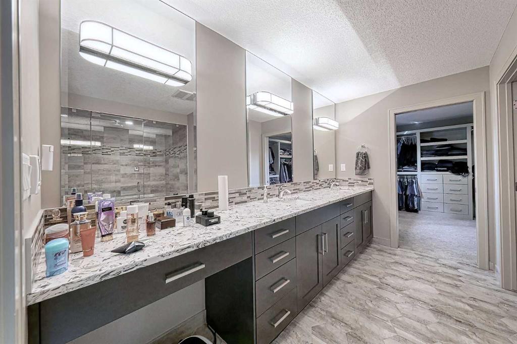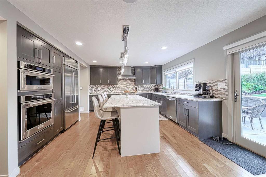 Welcome to 5039 Norris Road NW — an exceptional executive residence nestled in the mature community of North Haven, just minutes from downtown Calgary and steps from Nose Hill Park. Combining modern luxury with family-friendly functionality, this fully renovated home offers the perfect blend of sophistication, warmth, and comfort. A striking curved staircase and bright open foyer set the tone for the refined interior. To the left, a spacious living and dining area with a built-in dry bar is perfect for entertaining. Toward the rear, the impressive chef’s kitchen showcases premium cabinetry, an oversized quartz island, and high-end KitchenAid appliances including a six-burner gas range, wall oven, and built-in microwave. The convenient butler’s pantry, built-in desk, and soft-close drawers add thoughtful touches for everyday living. The kitchen seamlessly opens to a cozy family room featuring a stone-clad fireplace, custom shelving, and panoramic views of Nose Hill Park. Upstairs, a bonus room and home office (or optional guest bedroom) provide flexible space for work or relaxation. Three generously sized bedrooms, each with its own ensuite, ensure comfort and privacy for every member of the household. The primary retreat offers a private balcony with park views, a spa-inspired six-piece ensuite with dual vanities, makeup area, steam shower with bench and multiple shower heads, plus a custom walk-in closet designed for large wardrobes. The lower level continues to impress with a custom home theatre complete with a new projector and 10-foot screen – ideal for family movie nights. Two large storage rooms offer endless potential, including the option to add a wine cellar. A well-organized mechanical room features dual HRV systems, an instant hot water tank, and a $55,000 high-efficiency boiler system providing zoned, whisper-quiet heating and superior air quality. Outdoor spaces are equally inviting. A private courtyard, mature landscaping, and large patio create an ideal setting for outdoor dining and entertaining. Additional highlights include an exposed aggregate driveway, epoxy-coated double garage floor, and an LG Styler Steamer Closet for added convenience. Located on a quiet street in North Haven, this home offers quick access to the Calgary Winter Club, top-rated schools, shopping, major roadways, and the walking trails of Nose Hill Park — one of the largest urban parks in North America. A perfect balance of luxury, comfort, and location, this home truly stands out as a remarkable offering in one of Calgary’s most desirable communities.