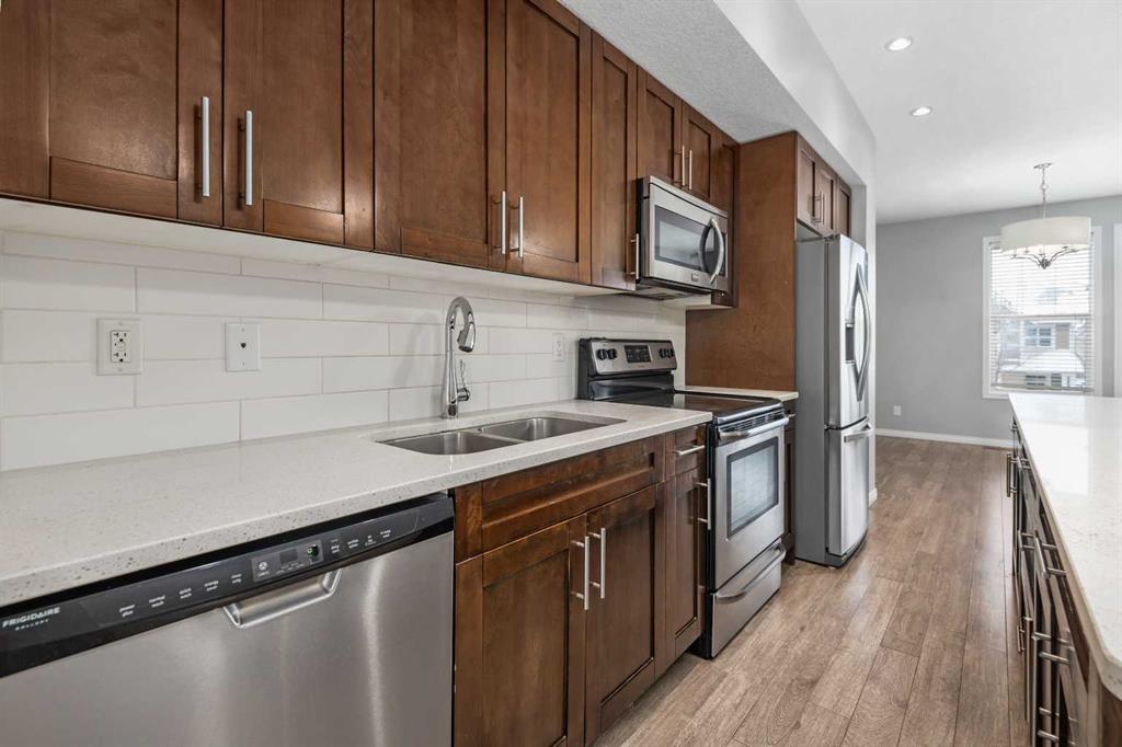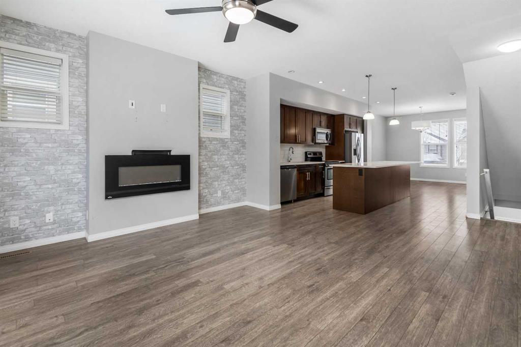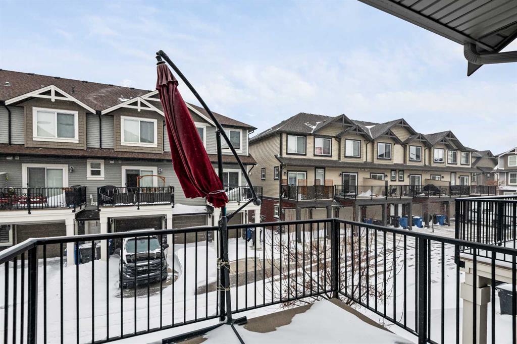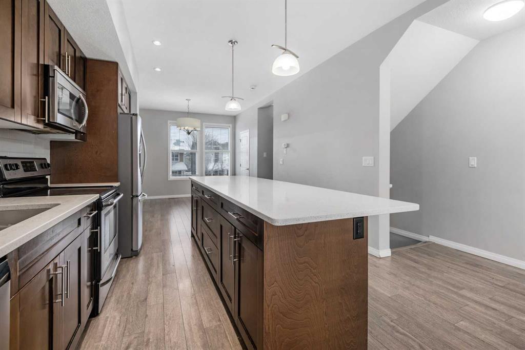 END UNIT – 3+1 BED / 4BATH – FULL UPGRADE PACKAGE – DOUBBLE ATTACHED GARAGE – A/C. Stunning End Unit Townhome in the Gateway at Williamstown, located in the sought-after Williamstown Community close to schools, parks, and playgrounds, this amazing unit offers modern living with ample parking, featuring a double attached garage and additional covered parking pad for two more cars, with a premium street-facing location for additional street parking! Upon entering, you’ll discover a versatile flex room that can easily be used as a 4th bedroom, perfect for guests or family, with a full 3-piece bathroom, with a stand-up glass shower, conveniently located on this level, along with ample storage and access to the double attached garage. The second level boasts a chef’s kitchen with an oversized quartz center island that comfortably seats four, complemented by top-tier stainless steel appliances. The bright living room features an electric fireplace and sliding glass doors that open to a private deck with a natural gas hookup—ideal for outdoor dining and relaxation, and a spacious eating area with large windows allowing an abundance of natural light. A 2pce powder room adds convenience on this level. On the upper level, sits an expansive primary suite, offering a luxurious ensuite with stylish quartz countertops, double sinks, a large glass shower, and a walk-in closet. This level also includes two additional spacious bedrooms, sharing another full bathroom, plus a convenient laundry area, making everyday living easier and more efficient. This move-in-ready townhome is ideal for comfortable family living and easy access to all amenities. Don’t miss the opportunity to make this gorgeous home yours!
