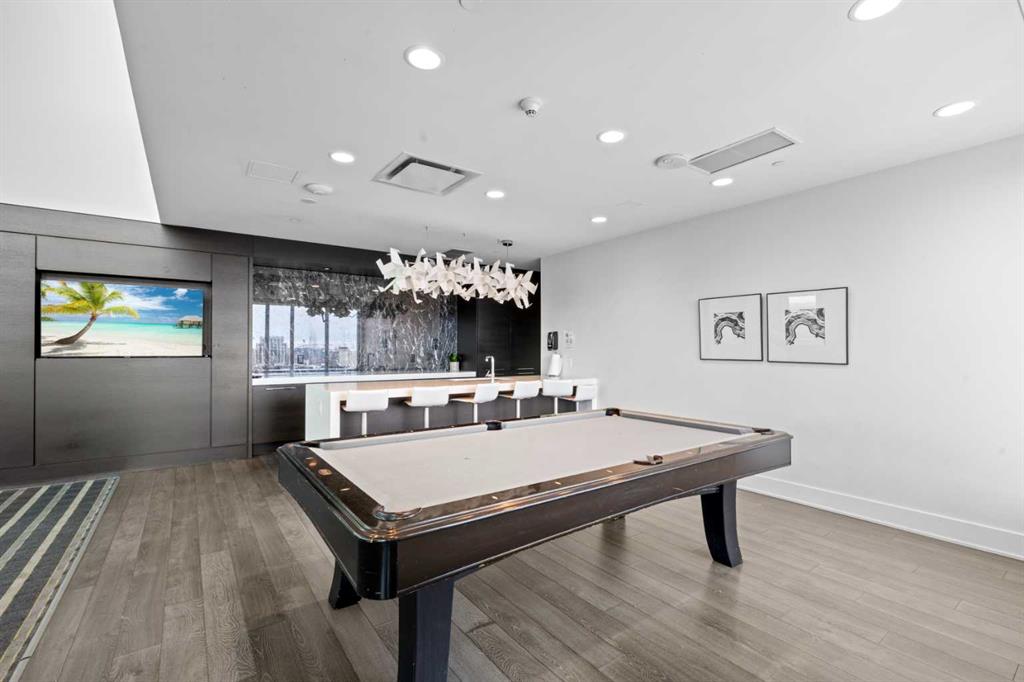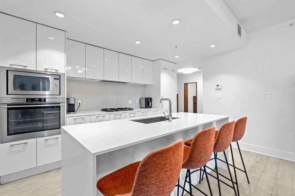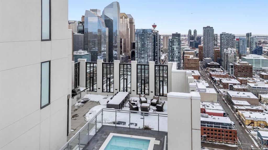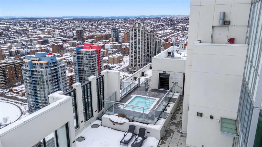 Additional luxuries include one titled heated underground parking stall, an assigned storage locker, and access to some of the most impressive amenities in the city. Mark on 10th offers a full-time concierge, a tranquil third-floor garden terrace, a state-of-the-art fitness centre, cedar sauna and steam room, a guest suite, and a stunning two-storey rooftop lounge with entertainment areas, workstations, pool table, and a breathtaking rooftop hot tub with panoramic views extending to the Rocky Mountains.