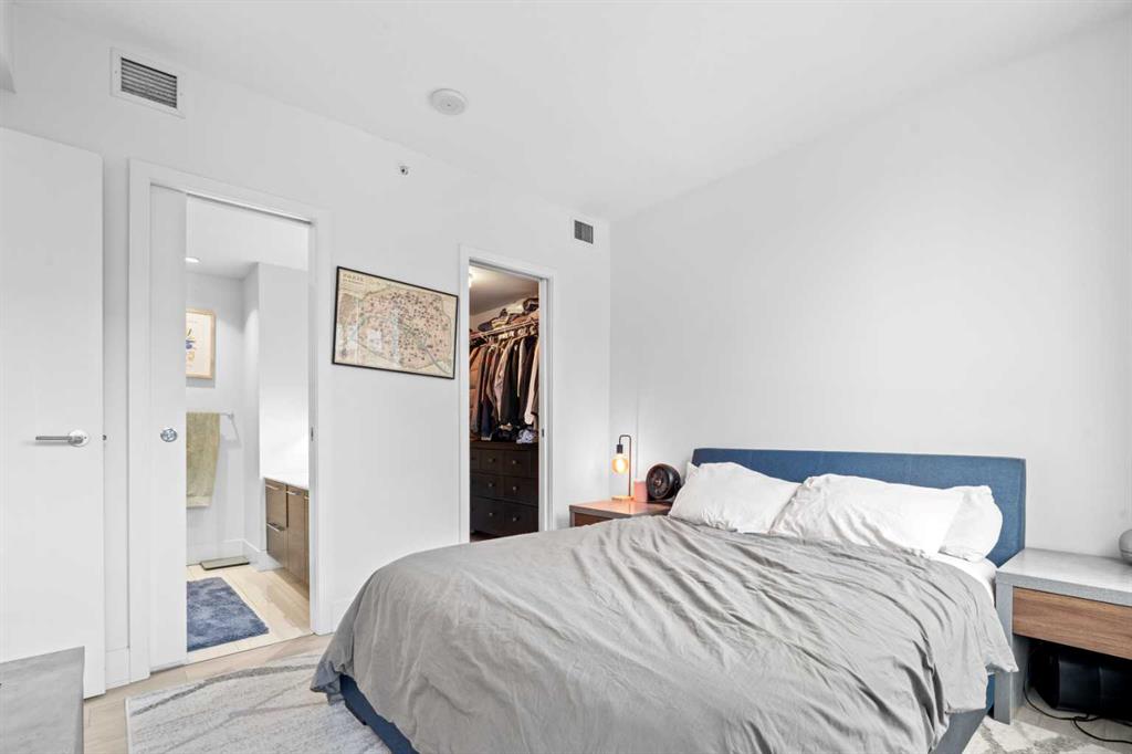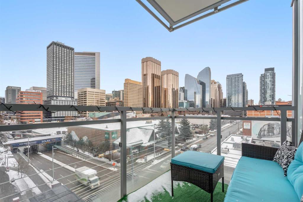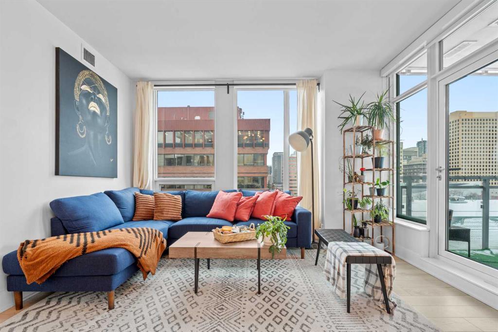 Welcome to Residence 506 at the iconic Mark on 10th, where elevated urban living meets resort-style sophistication in the heart of Calgary’s Beltline. This rare, nearly 900sqft corner residence features 2 bedrooms, 2 bathrooms, and a full den, offering a modern split-bedroom layout wrapped in floor-to-ceiling glass that floods the home with natural light from two exposures. Designed for both comfort and privacy, the bedrooms sit on opposite sides of the suite. The central living space features bright city views and direct access to a private balcony overlooking the downtown skyline.