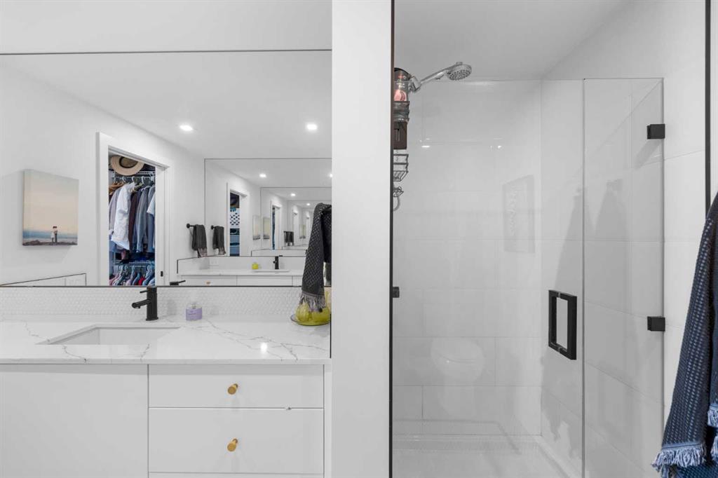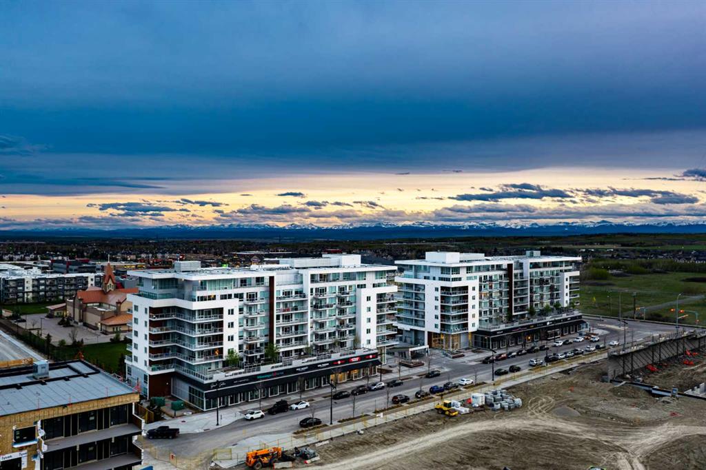 Discover sophisticated living in this upscale 2-bedroom, 2 bathroom condo nestled in the heart of West Springs. Perfect for professionals or downsizers, this concrete-built, low-maintenance residence offers quiet comfort, durability, and a prime location in a vibrant, walkable community. Step through the generous foyer into a sun-drenched open-concept layout featuring expansive windows and sliding glass doors that flood the space with natural light and showcase breathtaking views, including the mountains. The spacious living area opens seamlessly to a large balcony (one of the few private ones in the building), ideal for morning coffee or evening relaxation. The chef-inspired kitchen impresses with integrated stainless steel appliances, a gas range, and a large eat-up island—perfect for entertaining. The adjacent dining room is both generous in size and versatile enough to serve as a home office or library. Retreat to the primary suite offering a large walk-in closet and a spa-like 4-piece ensuite with dual vanities and a walk-in shower. A second bedroom and a stylish 4-piece bath with deep soaker tub provide flexibility for guests or family. The flexibility of the bedrooms and bathrooms in this unit would also lend itself to two adults easily sharing the space. You’ll also appreciate the in-suite laundry and flooring with acoustic underlay throughout. Additional features include: air conditioning, 1 titled underground parking stall, EV charging stations & bike storage, owner’s lounge on same level, lobby concierge, ground-level restaurants, shops, wellness studios, community gardens. Just minutes from Calgary French & International School, Webber Academy, Rundle College, and Ernest Manning High School, and quick access to Stoney Trail for weekend getaways. This quiet unit is extremely well-maintained and move-in ready, and combines luxury, lifestyle, and location into one exceptional offering.