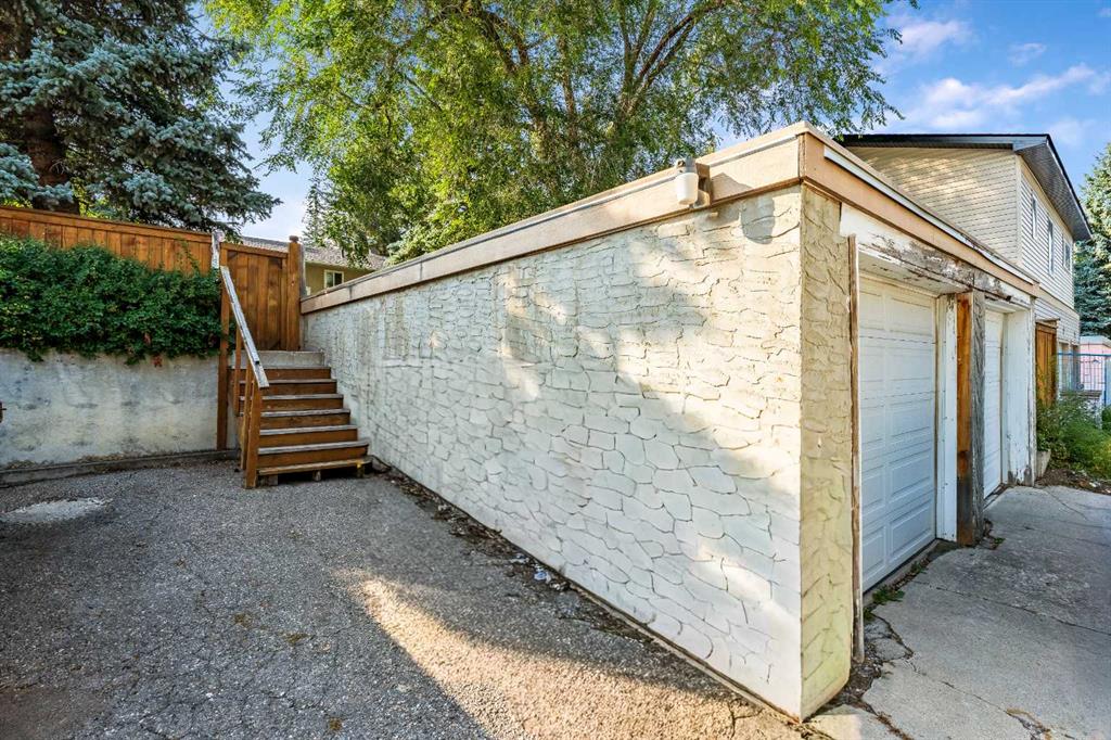 Discover exceptional potential in this well maintained four-bedroom home situated on an impressive 54′ x 120′ lot. This property presents an exciting opportunity for renovation and customization, perfectly positioned in a desirable Calgary neighborhood with outstanding accessibility to amenities and transportation. The main floor showcases beautiful hardwood flooring throughout, complemented by an open kitchen featuring modern stainless-steel appliances. Three generously proportioned bedrooms provide comfortable living space, while the spacious dining room offers ideal entertaining possibilities. A convenient main floor bathroom completes this level. The fully finished basement expands living options with a large recreation room highlighted by an attractive brick wood-burning fireplace. Additional basement features include a fourth bedroom, open office area, practical storage room, and essential laundry and mechanical facilities. The property’s outdoor spaces are equally impressive, featuring a fully landscaped private backyard and double detached garage accessed via the rear alley. The substantial lot size presents exciting “Carriage House” potential with city approval, offering future development opportunities for additional income or expanded living space. Location advantages abound with walking distance access to schools at all educational levels, convenient public transit connections, Light Rail Transit stations, recreational facilities including outdoor hockey rinks and fitness centers, plus proximity to the natural beauty of Fish Creek Provincial Park. The neighborhood provides an excellent balance of urban convenience and outdoor recreation opportunities. This property combines solid existing features with tremendous potential for enhancement, making it an ideal choice for buyers seeking a home they can truly make their own while enjoying an established, well-connected community.