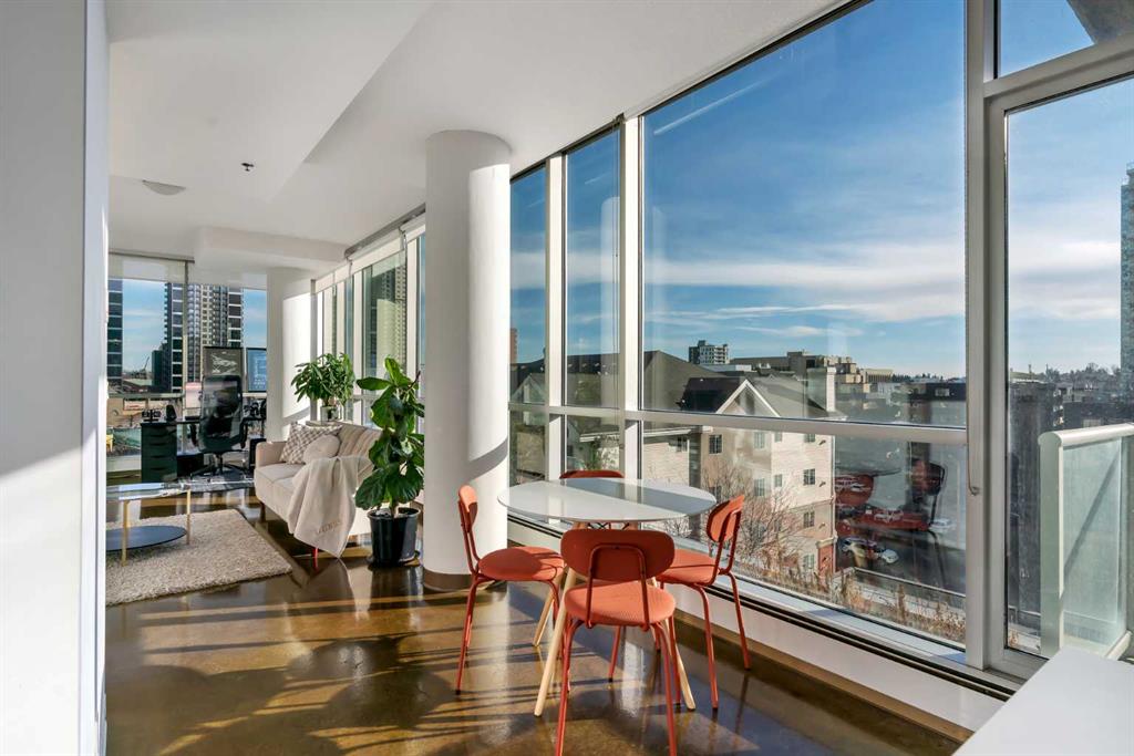 Set in the heart of the Beltline, this impressive corner unit in Colours offers incredible southwest views, modern design, and an unbeatable inner-city location. With floor-to-ceiling windows wrapping around the space and covering more than half of the unit’s walls, this home is filled with natural light while showcasing sweeping city and mountain views. Corner units with this exposure and window coverage rarely come available, making this a standout opportunity. The spacious one-bedroom layout features an open, functional design that makes everyday living easy. The seamless flow between the living, dining, and kitchen areas creates a comfortable space for relaxing, entertaining, or working from home. Whether you’re a first-time buyer, investor, or someone looking for a low-maintenance urban lifestyle, this unit offers flexibility and great use of space. The kitchen is finished with rich espresso cabinetry, granite countertops, and stainless steel appliances, combining clean, modern style with practical function. The open design keeps the space feeling bright and connected, while the expansive windows create an inviting atmosphere throughout the home. The bedroom offers a comfortable retreat with plenty of natural light, and the bathroom continues the home’s modern finishes. Additional features include in-suite laundry, heated underground parking, and the peace of mind of a secure, well-managed building. Living in Colours means you’re steps away from everything the Beltline has to offer. Enjoy walking access to restaurants, cafés, shopping, nightlife, and everyday amenities, with quick access to downtown offices, transit, and green spaces. It’s a location that truly supports a convenient, walkable lifestyle. If you’re looking for a bright, modern condo with incredible views and a central location, this corner unit delivers outstanding value and style in one of Calgary’s most vibrant communities.