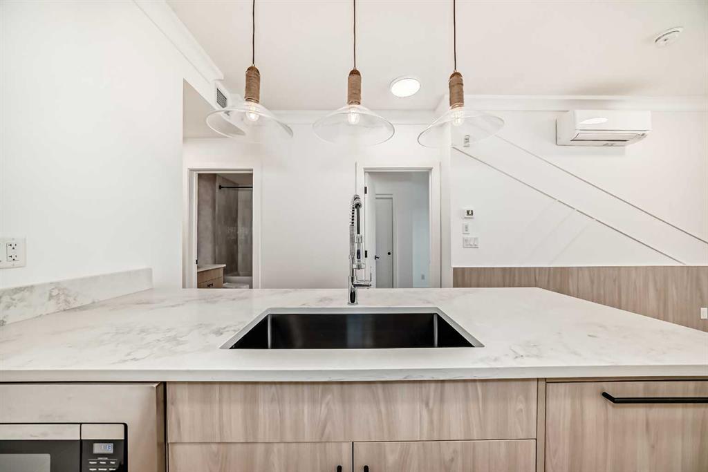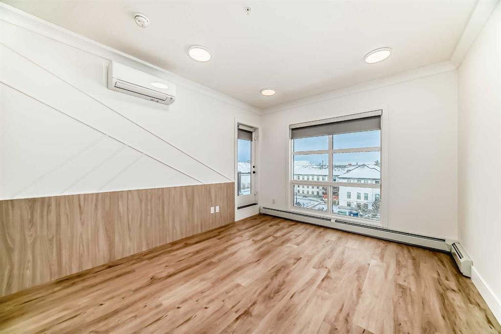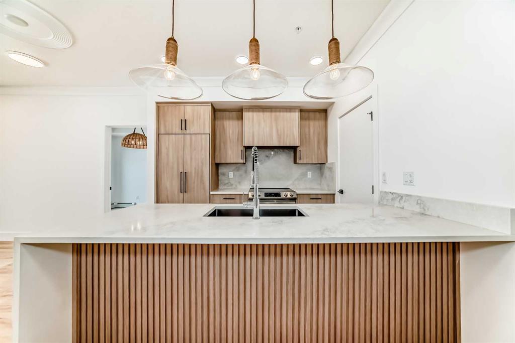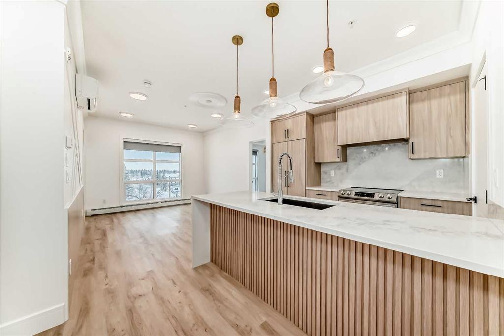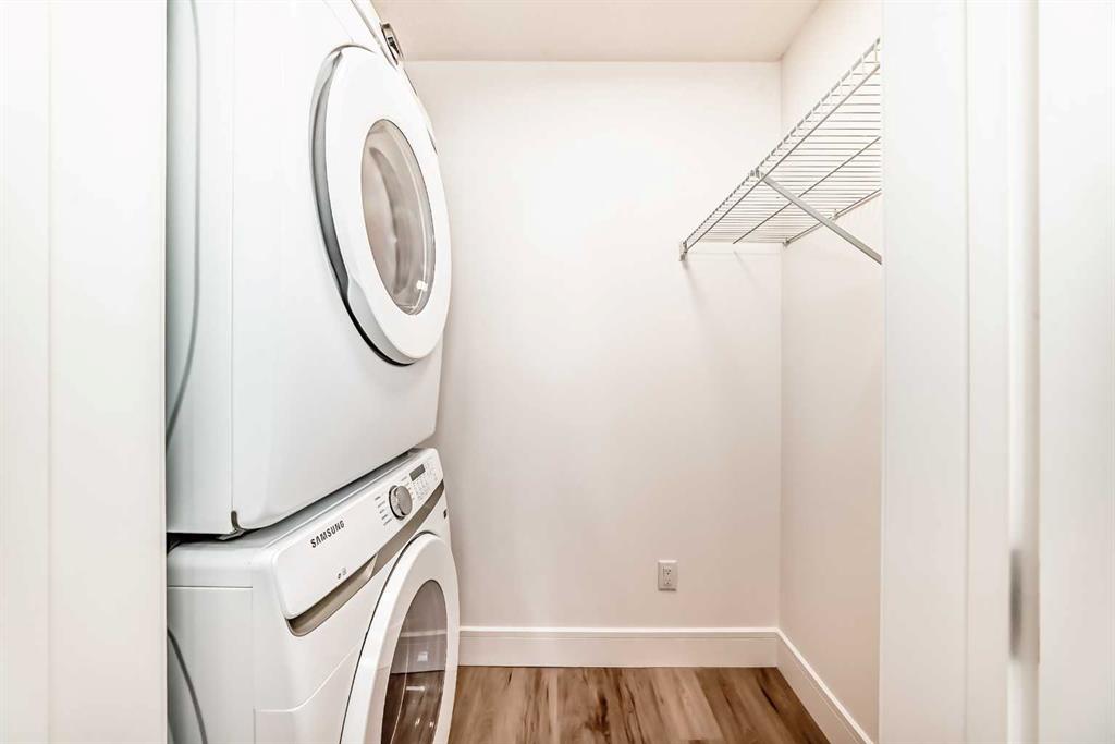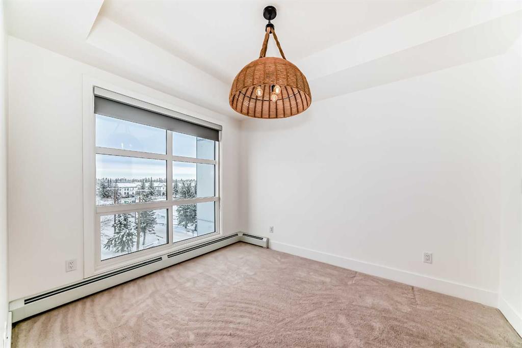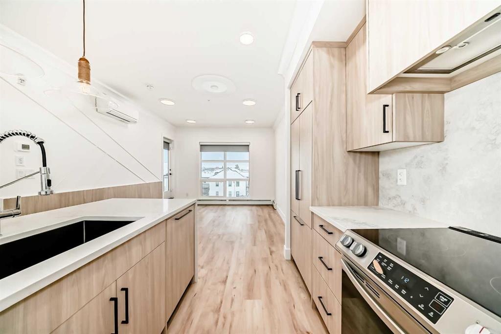 OPEN HOUSE Saturday Nov 29, 1-4pm. Welcome to the Quesnay in Calgary’s historic Currie Barracks, a community built with a walkable urban design, heritage sites, bike paths, green spaces and dog parks, all minutes from the downtown core. This 2 bed, 2 bath offers an elevated living experience with unobstructed VIEWS of the DOWNTOWN SKYLINE and a front row seat to epic Calgary sunrises. The kitchen showcases a quartz waterfall countertop and panelled Fisher Paykel appliances, custom light fixtures and a designer feature wall. A private covered balcony, CENTRAL AIR CONDITIONING, titled underground parking stall and titled storage locker for comfortable, convenient living. Check the comparables, this one is priced to sell. Immediate possession.