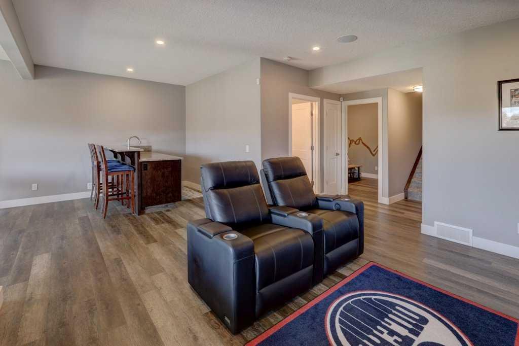 The walk-out lower level is designed for entertainment with a media area, dual TVs, bar with sink and fridge, and access to a beautifully landscaped backyard oasis featuring underground irrigation, stamped concrete patio, raised garden beds and newly planted shrubs. This lower walkout could easily be suited for secondary income or in-law suite.