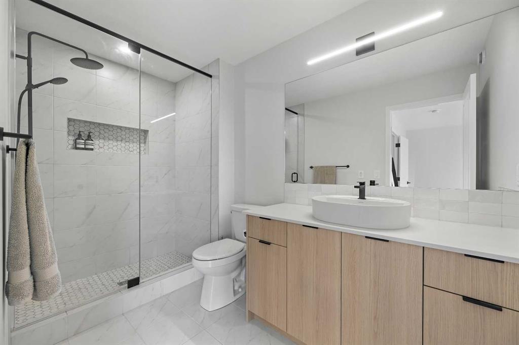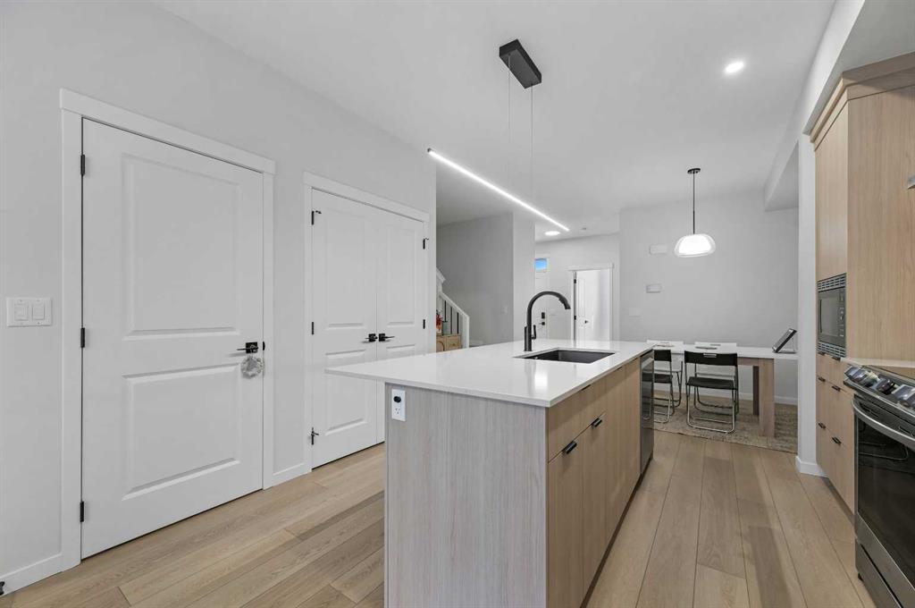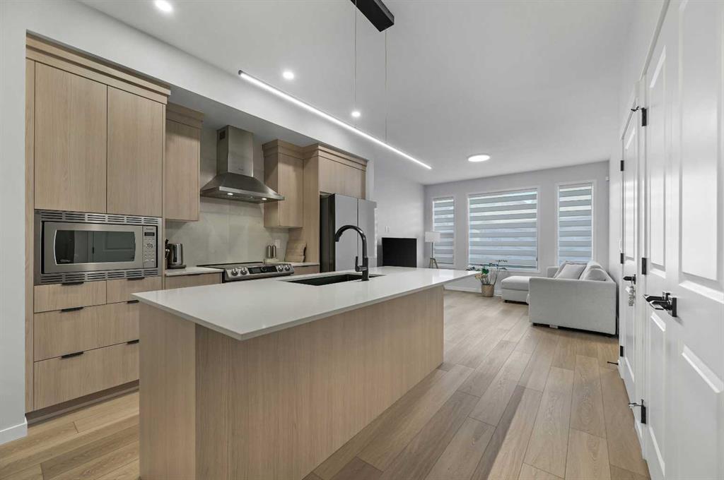 ** Great Value – $80K in upgrades – list available ** Side Entry ** Double Garage ** 1777+ Sq Ft ** 4 Bedroom home ** Immaculately maintained, almost brand new, bright and open plan. Modern design 2-story home in the heart of the vibrant Livingston community. Located on a fully paved lane with well-maintained double garages, offering a clean and organized rear access rarely found. GOURMET KITCHEN – CHEF’S DELIGHT! Custom features include upgraded classic wood-style cabinet doors, an efficient family-approved layout with stainless steel appliances (including a smooth-top stove), a glass panel front fridge, a central island with a flush eating bar, an undermount black granite sink, quartz countertops, custom full-height backsplash tile, and a stainless steel hood fan. The spacious dining room and great room bookend the open design, all of which feature 9-foot ceilings. The larger floor plan features a front main floor bedroom/office/den, an oversized front foyer, a back mudroom, a staircase with railings, and a landing. Super bright design!! All flooring is upgraded with wide-plank LVP hardwood flooring on the main floor and tile floors in the upper bathrooms- no carpet! BONUS: The upstairs bonus room is perfect for a home office, spare bedroom, or extra TV room. Three generously sized bedrooms & 2.5 bathrooms. NOTE: The primary bedroom features a private 3-piece en-suite with an upgraded sink basin, quartz countertops, and a spacious walk-in tiled shower with glass doors. Other upgrades include custom window coverings, an unspoiled basement with high 9′ ceilings, side entry, oversized windows, a rough-in bathroom, and a 22′ x 22′ double-car garage with room for extra street parking out front. Excellent curb appeal with a covered front porch, fully landscaped with a walkway and fencing, all complete. Available for a 30/60 day possession date. Please feel free to call your friendly REALTOR(R) to view.
