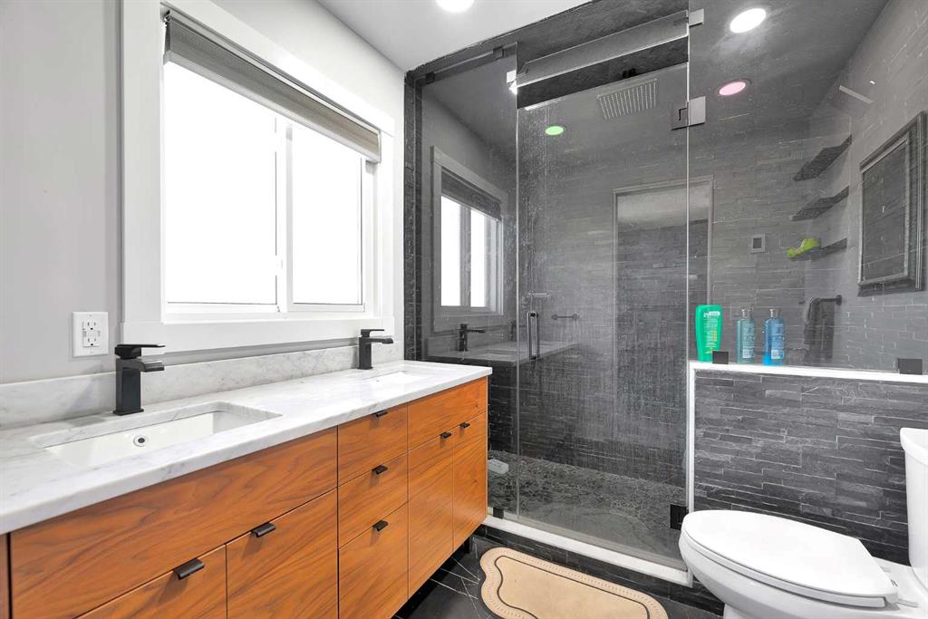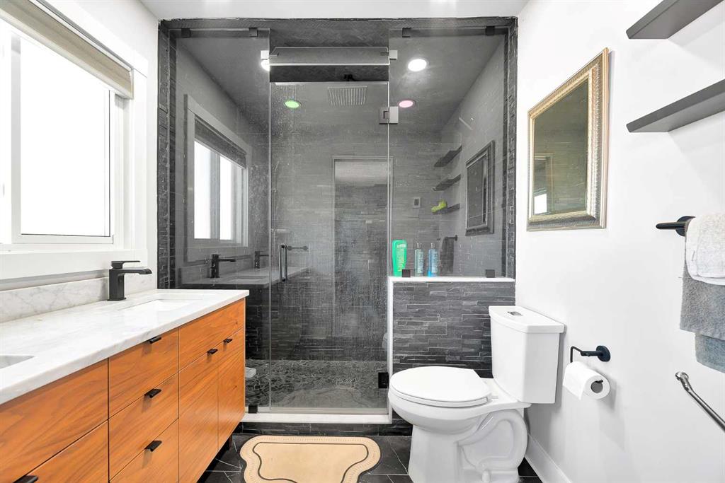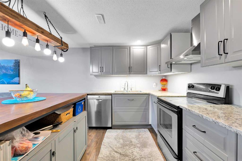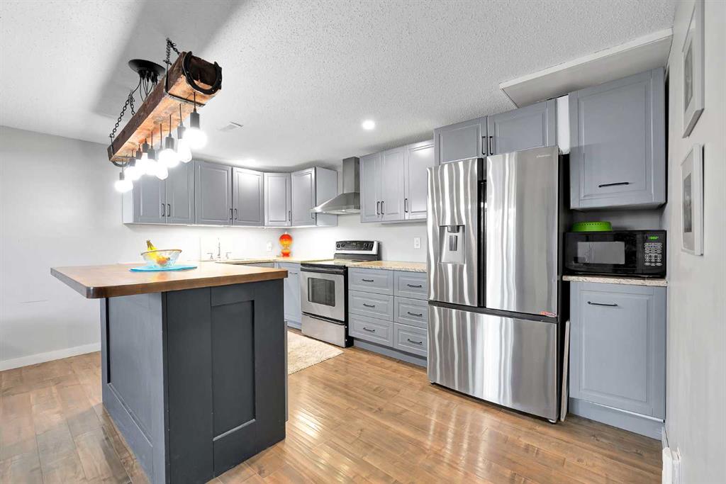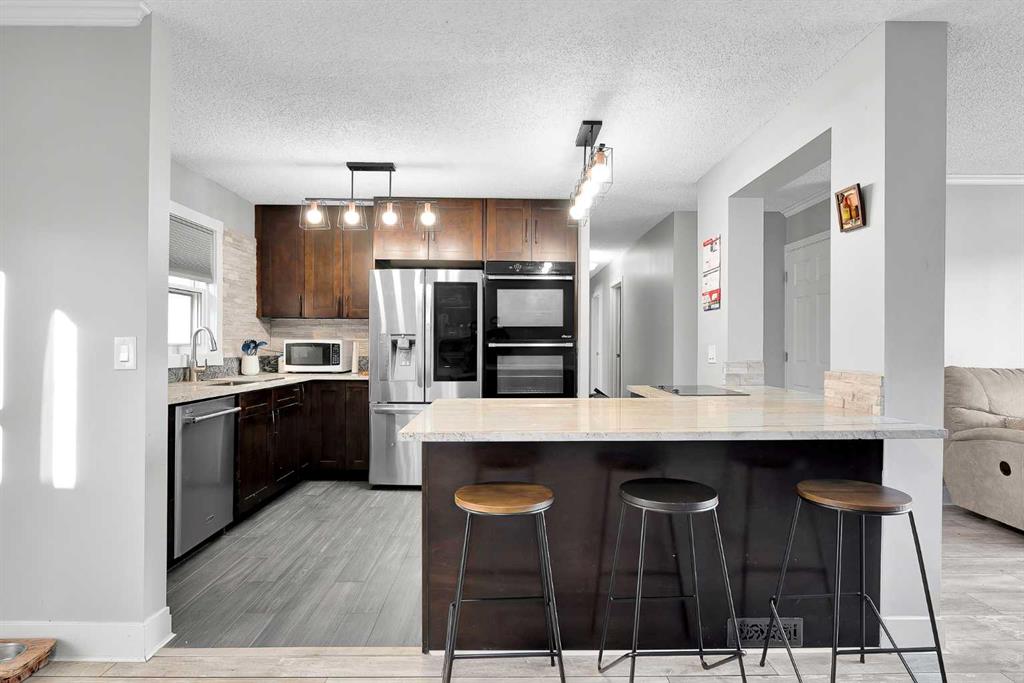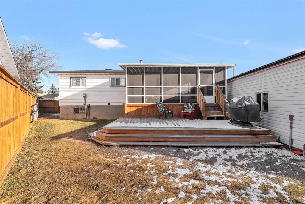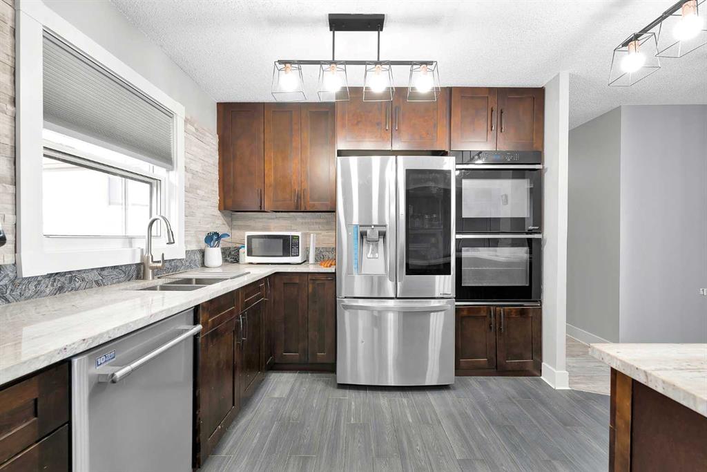 Fantastic opportunity in a great neighborhood . This bi-level home is located on a massive pie lot and has had substantial renovations which include both kitchens , all 3 bathrooms , newer lvp flooring , newer windows , newer garage ( almost 25 ft x 20 ft ) with oversized parking pad for additional parking , room for an RV . A newer fence encompasses the large lot . A total of 5 bedrooms ,3 on the main including a lovely primary suite with walk in closet and 5 piece luxury ensuite . The main level boasts an open plan with Island kitchen , newer appliances , larger windows , easy access to the enclosed , south facing sun room ( 20 ft x 10 ft ) large windows and a step down to ground level patio . The lower level is bright and inviting with 2 full bedrooms , an updated 4 piece bath , separate laundry room . The spacious open plan has an island kitchen and breakfast bar , offering plenty of counter space and cupboard space . A cozy living room caps off this well designed lower level . This is a great opportunity for a full rental ( up and Down ) or live up , rent down .