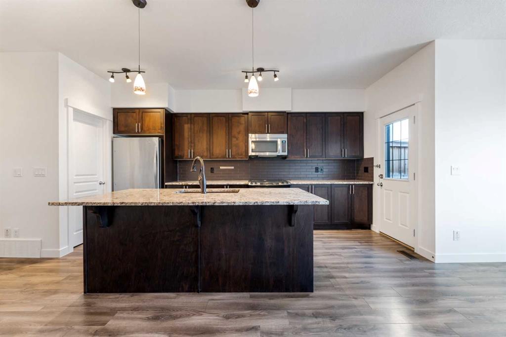 FRESHLY PAINTED AND NEW CARPET UPSTAIRS! Here’s your opportunity to own a charming, move-in-ready home with incredible value in a growing community! Welcome to this beautiful 2 storey home with 1483 SQ FT of functional living space & located in the desirable community of Legacy! From the moment you arrive, you will appreciate the beautiful curb appeal, single attached garage with driveway, perfect for first time buyers, young families, or savvy investors. The open-concept main floor features durable laminate flooring, perfect for kids, pets, and everyday living. The kitchen is the heart of the home, offering stainless steel appliances, a large island with plenty of prep space, a pantry, and an open flow to the dining area that easily accommodates a full-sized table and the cozy living room offers lovely views of your sunny west facing backyard. The backyard is an extension of the kitchen & offers a BBQ deck, a large stone patio, perfect for summer BBQs, outdoor dining, or watching the kids and pups play in the fully landscaped and fenced/private yard. The top floor offers a spacious master bedroom with a large closet & a 3piece ensuite (stand-up shower) Completing the upper floor are two additional bedrooms, a 4piece bathroom & laundry set. The property also offers an unfinished basement, waiting for your special touches, attached single car garage with parking pad + RV/Trailer parking. This property is ideally located close to all major amenities including shopping, schools, transit, walking paths & major roadways. A fantastic opportunity to own a bright, functional, and well cared for home in a welcoming neighborhood!