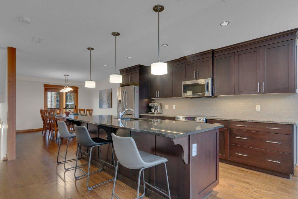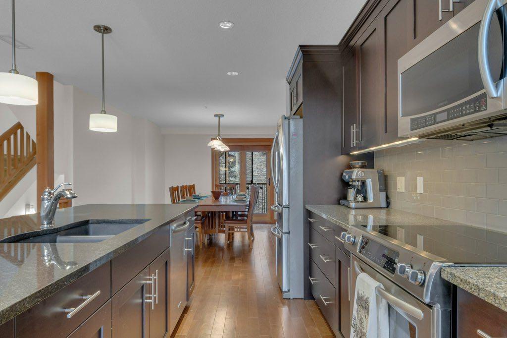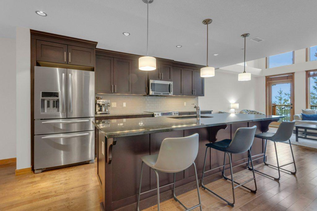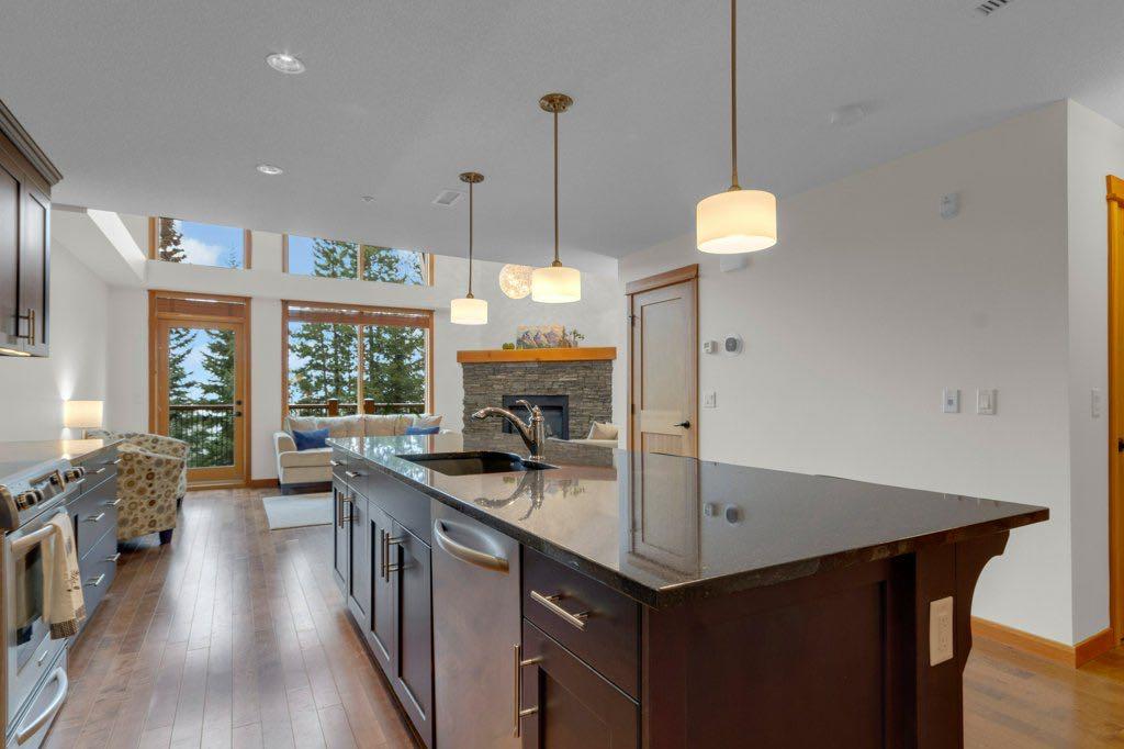 Welcome to a highly sought-after mountain retreat with panoramic views of the Rocky Mountains, perched in the prestigious Three Sisters community of Canmore, Alberta. This beautifully updated, move-in-ready 4-level townhome offers 2,445 sq ft of thoughtfully designed living space with 3 bedrooms and 4 bathrooms along with stunning mountain views from three exposures. Enjoy living in this walkable alpine community close to hiking and biking trails, golf, schools, transit and everyday essentials. Four expansive private decks and a lower patio create exceptional outdoor living opportunities. As a resident of Timberline Lodge, you’ll also have access to Canmore’s premiere amenities building with gym, pool, indoor & outdoor hot tubs, steam room, rentable social space for large gatherings, and a private movie theatre. Inside this home, vaulted ceilings and expansive windows fill the home with natural light. The upper loft offers flexible space for a family recreation room, home office, media lounge, or additional living space. A well-appointed kitchen with granite countertops and premium appliances are central within this luxury home. Highly desirable side-by-side heated underground parking complete the features of this rare listing in one of Canmore’s most coveted mountain communities. Enjoy a refined mountain lifestyle with this unbeatable property.