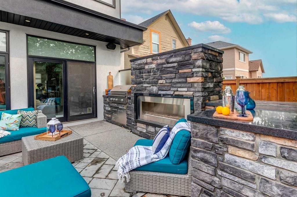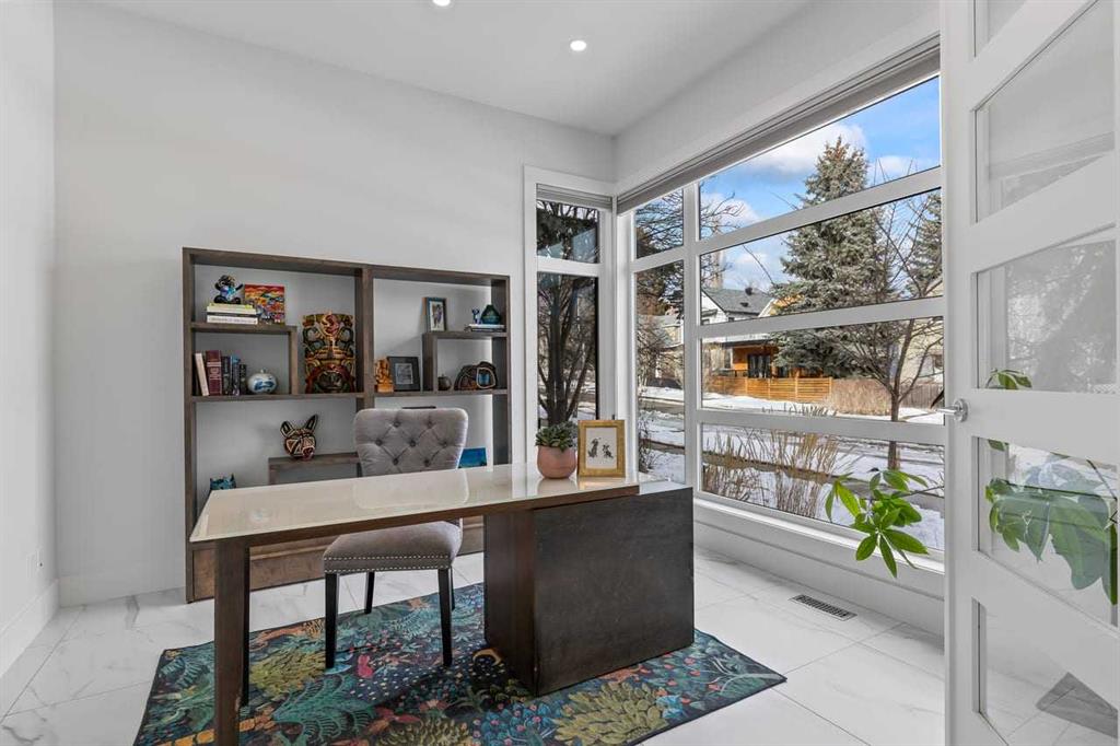 Modern Sophistication Meets Urban Living. Situated on a quiet, premier street, this custom home perfectly blends luxury with an unbeatable location. The centerpiece is a thoughtfully designed chef’s kitchen, featuring Jenn-Air appliances, a spacious entertaining island, and a butler’s pantry. Natural light floods the open-concept main level through a west-facing wall of windows, seamlessly connecting the living and dining areas. The office/flex room, with floor-to-ceiling windows, offers an inspiring space to work or unwind. On the second floor, the king-sized primary bedroom offers a stunning view of the downtown skyline. The 6-piece ensuite is a true retreat, including a freestanding slipper tub, steam shower, dual vanities, a water closet, and a walk-in closet. Two additional bedrooms with walk-in closets, a 4-piece bathroom, and a laundry room complete this level. The basement includes a family room, a rec room with a wet bar, a fourth bedroom, a 3-piece bathroom, and radiant floor heating throughout this level for maximum comfort. Step outside to a private west-facing backyard with an outdoor gas fireplace, BBQ, custom masonry, and an exposed aggregate patio, creating a seamless extension of the living space. A heated triple-car detached garage with epoxy flooring adds the finishing touch. Features include an east-facing front and a west-facing backyard for all-day sunlight, a mudroom with cabinets and storage, custom window coverings, central air conditioning, home automation system, an irrigation system, central vacuum/attachments, and more. Located on a quiet street in Bridgeland, you’ll be walkable to all the local amenities and downtown, plus easy access to main roads for convenient city-wide access.