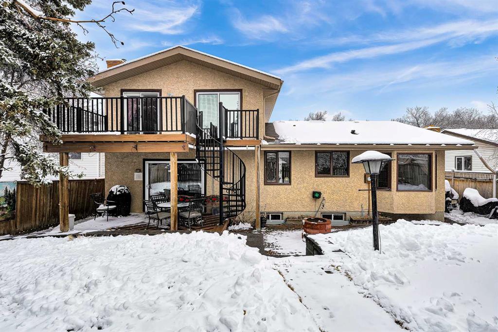 Welcome to this well-maintained home in the established community of Woodlands SW with a thoughtfully designed layout perfect for family living. Situated on a large lot with no neighbors behind, this home features a private, west-facing backyard where you can enjoy warm afternoon sun, mature trees, and beautifully landscaped outdoor spaces. Inside, the main floor offers a spacious and inviting living and dining area. A cozy sunken family room with a gas fireplace creates a warm atmosphere, while the bright kitchen features original oak cabinetry, granite countertops, newer stainless-steel appliances, and a breakfast nook overlooking the backyard. A main floor den with a window provides a great space for a home office or an additional bedroom. Hardwood flooring runs through the main level, complemented by porcelain tile in key areas. Upstairs, you’ll find three generously sized bedrooms, including a primary retreat with a walk-in closet and a private ensuite. A second full bathroom serves the additional bedrooms. A unique feature of this home is that all bedrooms have access to balconies – perfect for enjoying fresh air and quiet moments throughout the day. The fully developed basement offers a den and a full bathroom providing great flexibility for guests or additional living space, along with a large recreation room with a wet bar and a cedar sauna, creating the perfect setting for both entertaining and relaxing. This home has been well cared for over the years with updates including a newer roof and most of the updated windows. The outdoor space is truly special, featuring a large composite deck with a gas line for BBQ, a custom stone patio with a gas fire-pit, multiple seating areas, and a private, elevated yard surrounded by mature landscaping – ideal for entertaining or simply enjoying peaceful evenings at home. Additional highlights include an oversized heated double attached garage, RV parking with front access – perfect for your trailer, boat, or weekend adventures. Located just minutes from Fish Creek Park, Canyon Meadows Golf & Country Club, Stoney Trail, and a variety of shops and amenities, this home offers not only space and comfort, but also a lifestyle connected to nature and convenience.