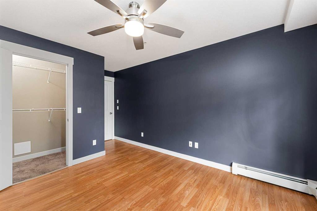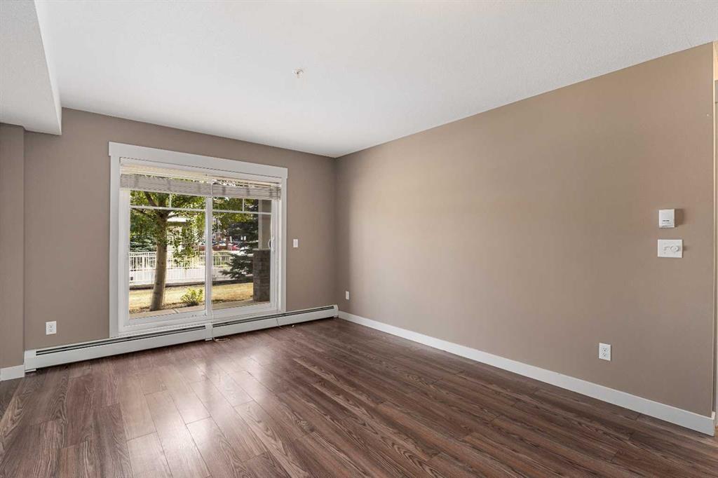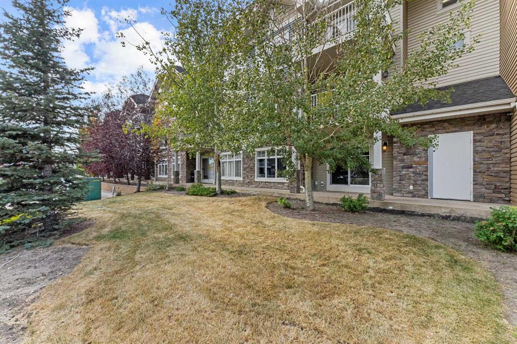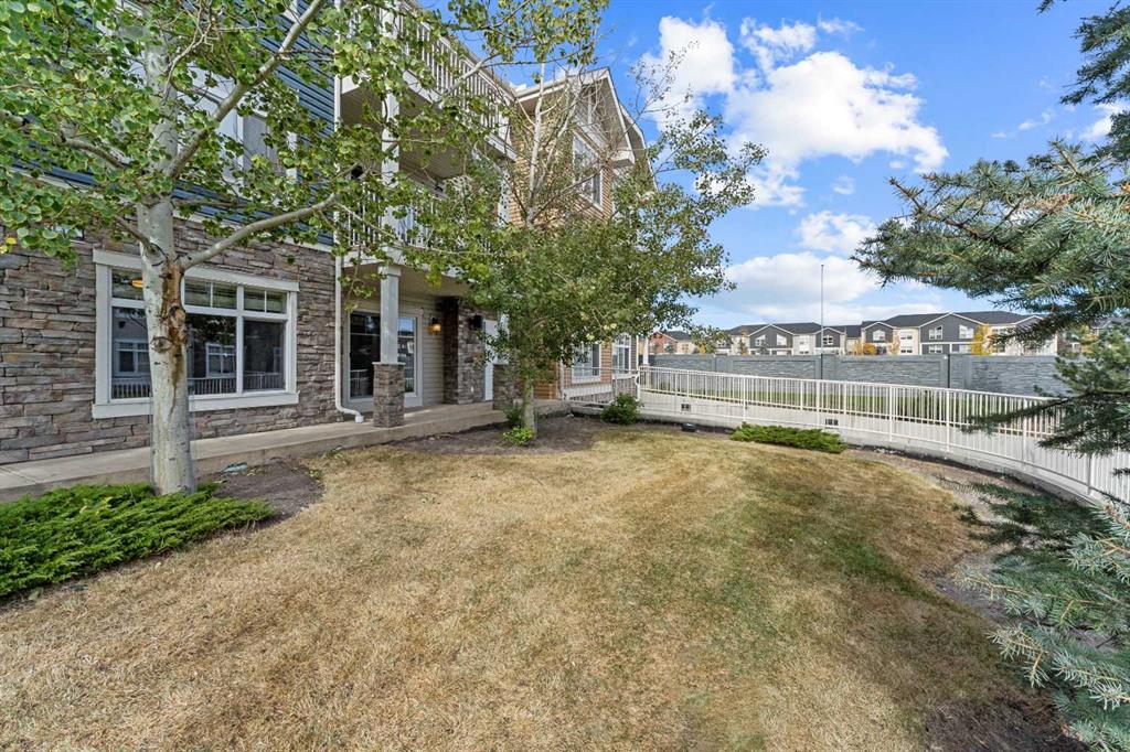 Welcome to this beautifully designed main-floor one-bedroom condo in the desirable community of Skyview Ranch. This bright and well-maintained home offers a perfect blend of comfort and functionality with private ground-level access and green space right outside your patio — ideal for enjoying morning coffee or walking your pet. The open-concept layout features a modern kitchen with rich espresso cabinetry, granite countertops, tile backsplash, stainless steel appliances, and a peninsula island with a seating bar — perfect for casual dining or entertaining. The living area is spacious and inviting, filled with natural light through large windows and sliding doors to the patio. The bedroom includes double closets, while the full bathroom offers a contemporary design with an oversized vanity and sleek finishes. Additional conveniences include in-suite laundry, titled underground parking, and an assigned storage locker. Located close to Stoney Trail, Deerfoot, shopping, schools, and parks, this move-in ready home offers both lifestyle and value in a well-managed complex.