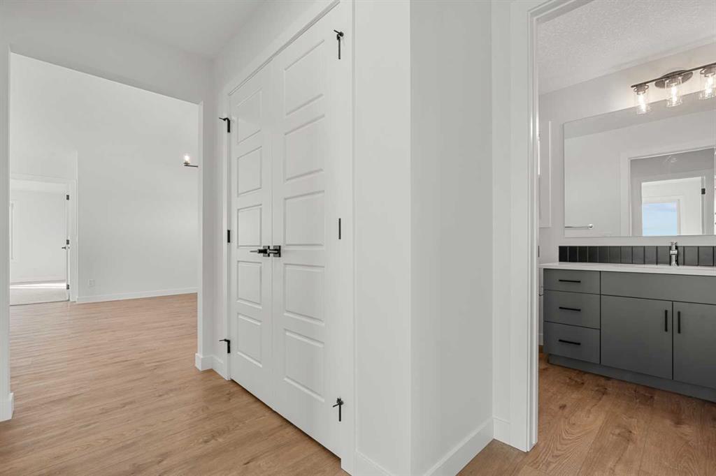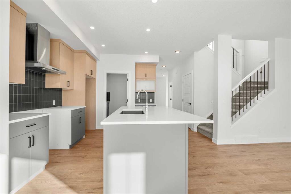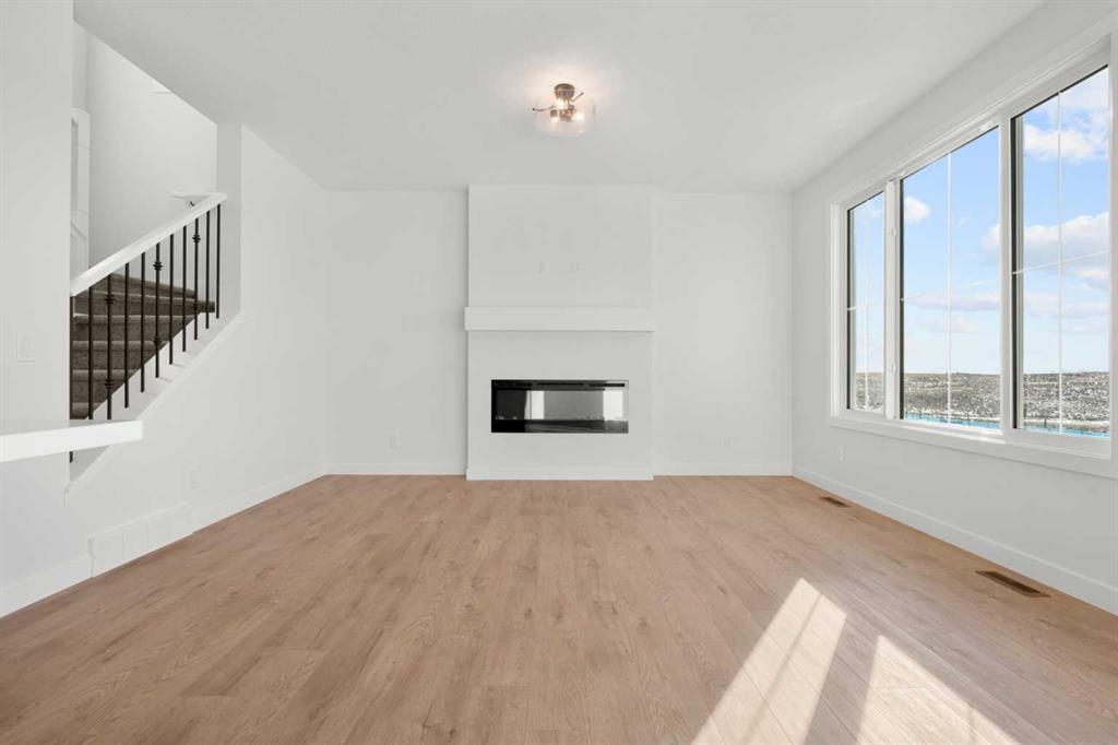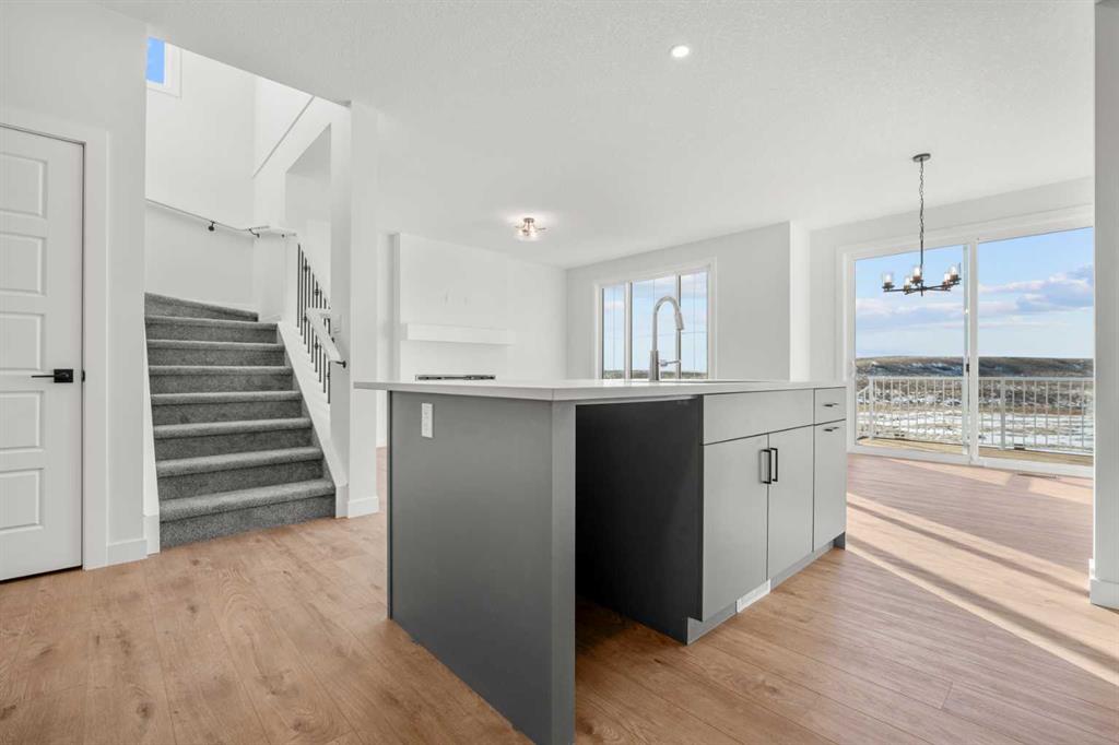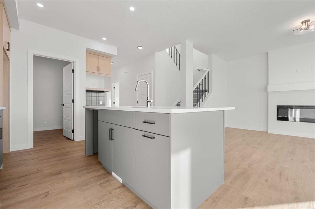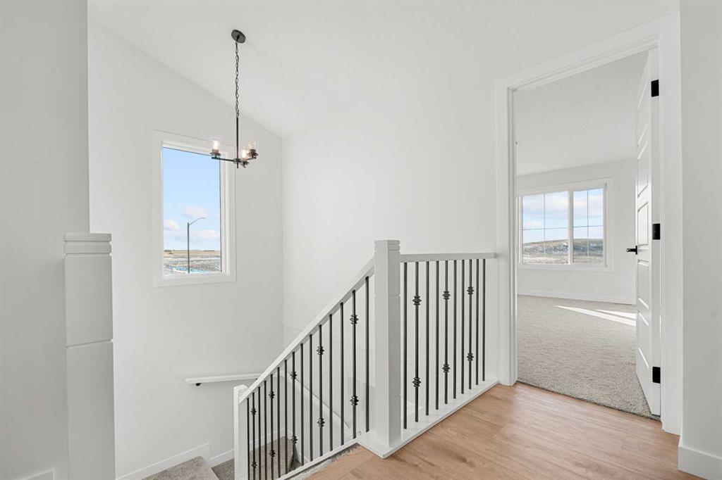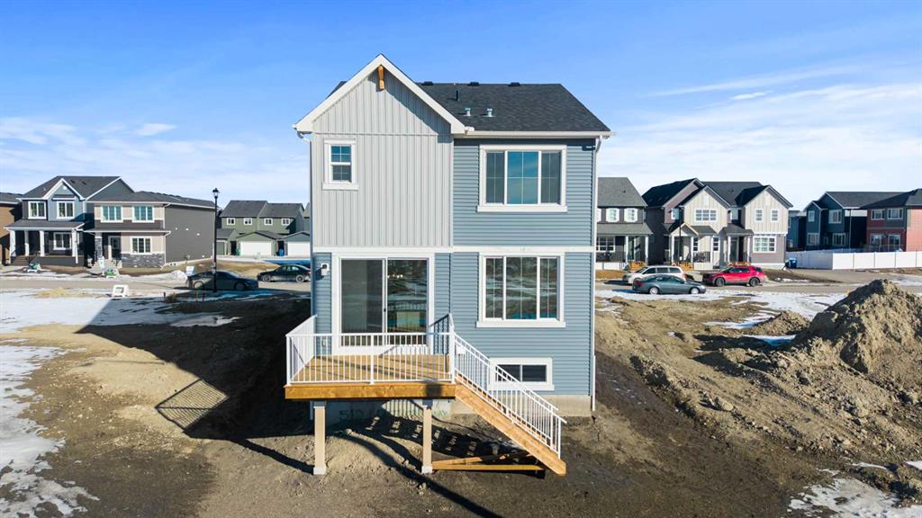 Welcome to 512 Lawthorn Way SE in Airdrie , a beautifully crafted home that offers nearly 2,400 sq. ft. of refined living space, featuring 4 spacious bedrooms and 3 bathrooms in a thoughtfully designed two-storey layout. Perfectly positioned backing onto 40th Avenue with stunning mountain views, this home combines elevated design with everyday functionality. The main floor showcases a modern kitchen complemented by a fully equipped spice kitchen, ideal for entertaining and preparing elaborate meals while keeping the main space pristine. A convenient side entrance provides direct access to the undeveloped basement, offering excellent potential for future development or multi-generational living. Upstairs, the home continues to impress with a bright and expansive bonus room featuring vaulted ceilings, creating an open and airy retreat. The luxurious primary suite includes a spa-inspired 5-piece ensuite with a soaker tub with tiled skirt, separate shower, and private water closet for added comfort and privacy. Luxury vinyl plank flooring in the bonus room and upper hallways adds both durability and modern style. Additional highlights include a beautiful electric fireplace with a paint-grade mantel and numerous upgrades throughout. Ideally located with quick access to Deerfoot Trail, this home places you just minutes from CrossIron Mills Mall, Calgary International Airport, schools, parks, and a wide variety of amenities. A perfect blend of style, space, and convenience, this highly upgraded Home is an exceptional opportunity in one of Airdrie’s growing communities.