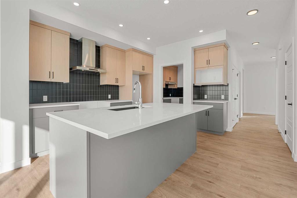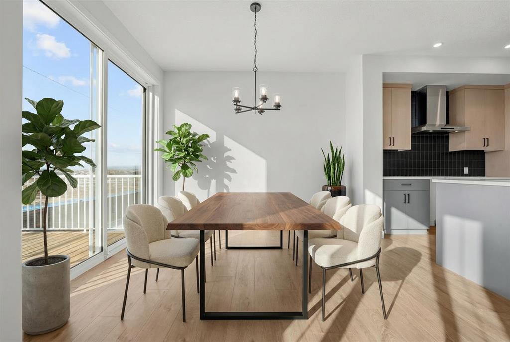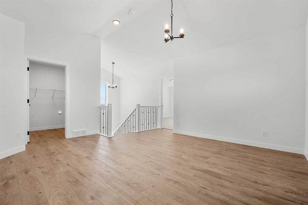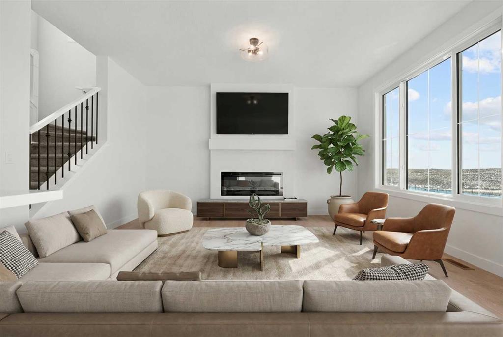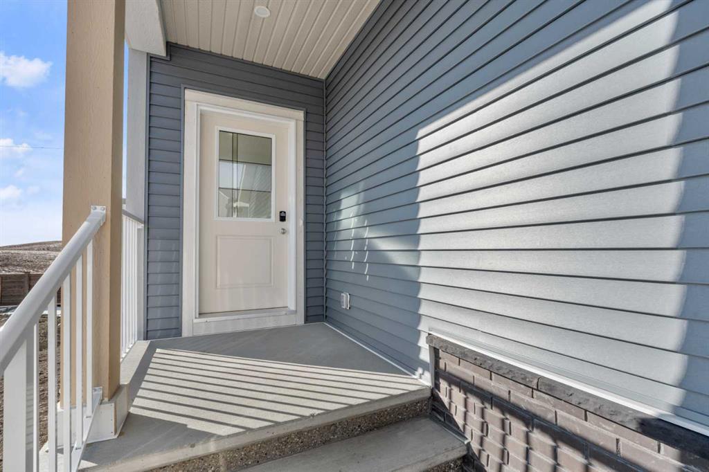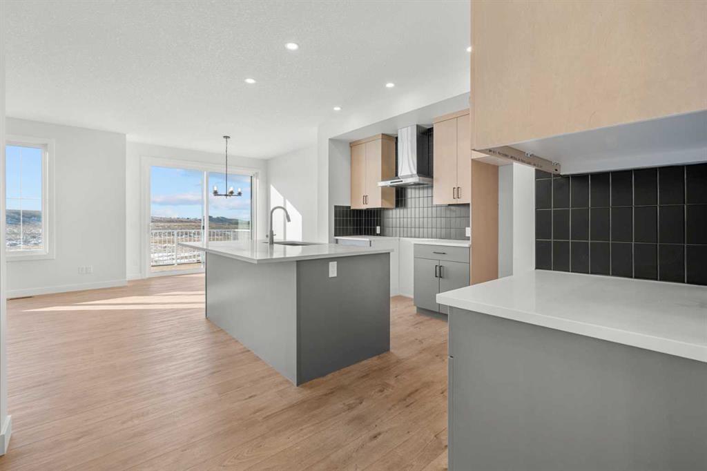 Welcome to 512 Lawthorn Way SE in Airdrie , a beautifully crafted home that offers nearly 2,400 sq. ft. of refined living space, featuring 4 spacious bedrooms and 3 bathrooms in a thoughtfully designed two-storey layout. Perfectly positioned backing onto 40th Avenue with stunning mountain views, this home combines elevated design with everyday functionality. The main floor showcases a modern kitchen complemented by a fully equipped spice kitchen, ideal for entertaining and preparing elaborate meals while keeping the main space pristine. A convenient side entrance provides direct access to the undeveloped basement, offering excellent potential for future development or multi-generational living. Upstairs, the home continues to impress with a bright and expansive bonus room featuring vaulted ceilings, creating an open and airy retreat. The luxurious primary suite includes a spa-inspired 5-piece ensuite with a soaker tub with tiled skirt, separate shower, and private water closet for added comfort and privacy. Luxury vinyl plank flooring in the bonus room and upper hallways adds both durability and modern style. Additional highlights include a beautiful electric fireplace with a paint-grade mantel and numerous upgrades throughout. Ideally located with quick access to Deerfoot Trail, this home places you just minutes from CrossIron Mills Mall, Calgary International Airport, schools, parks, and a wide variety of amenities. A perfect blend of style, space, and convenience, this highly upgraded Home is an exceptional opportunity in one of Airdrie’s growing communities.