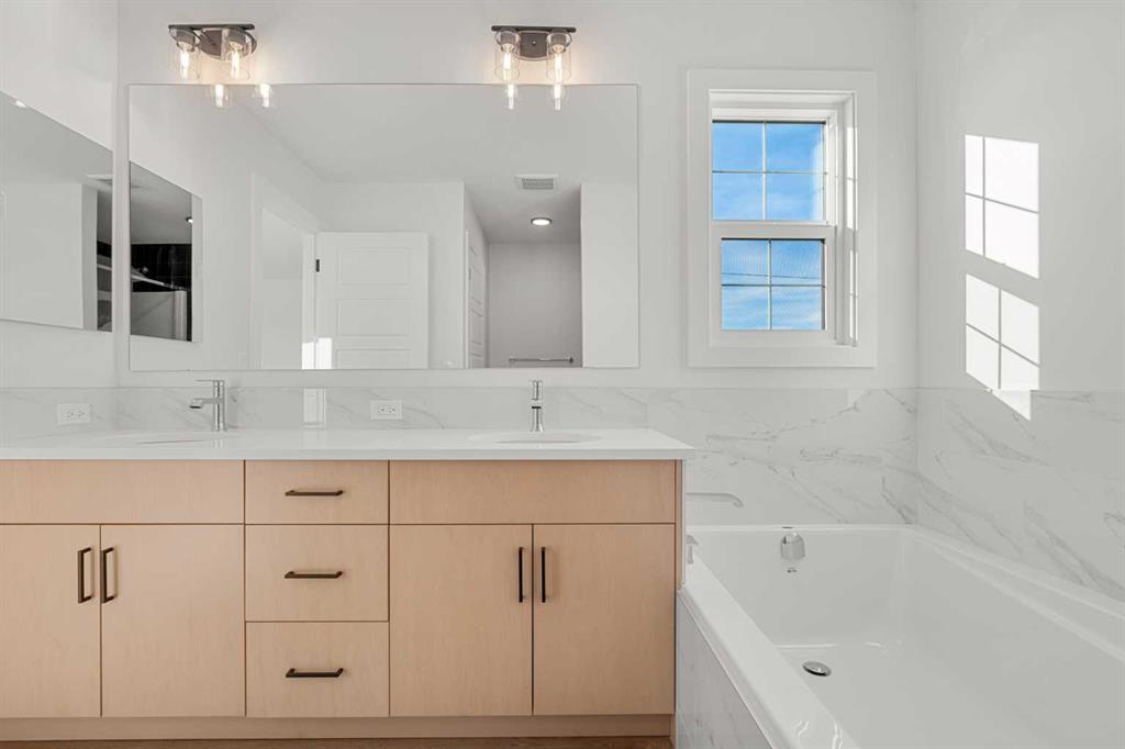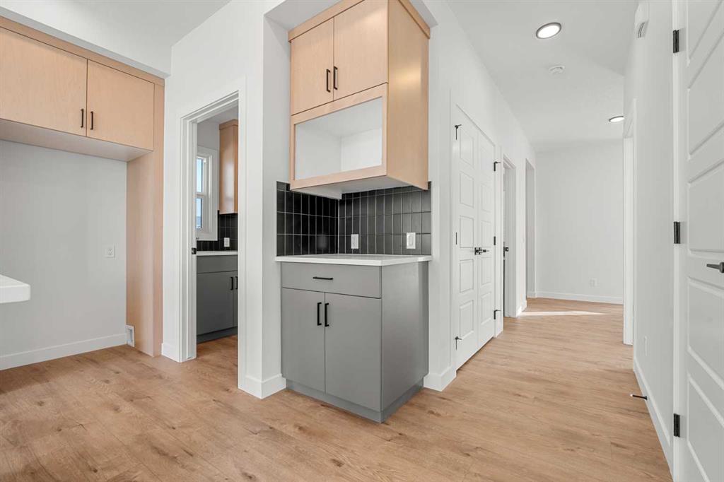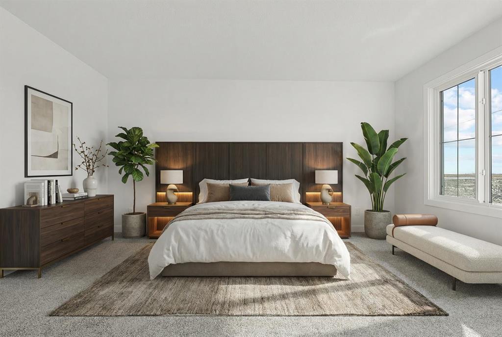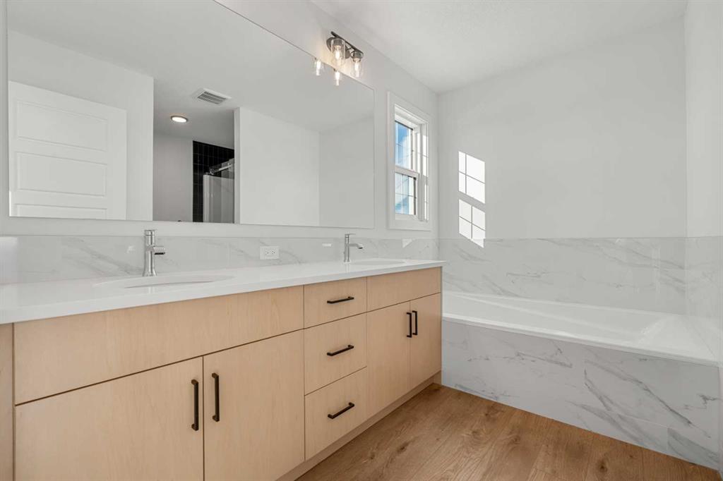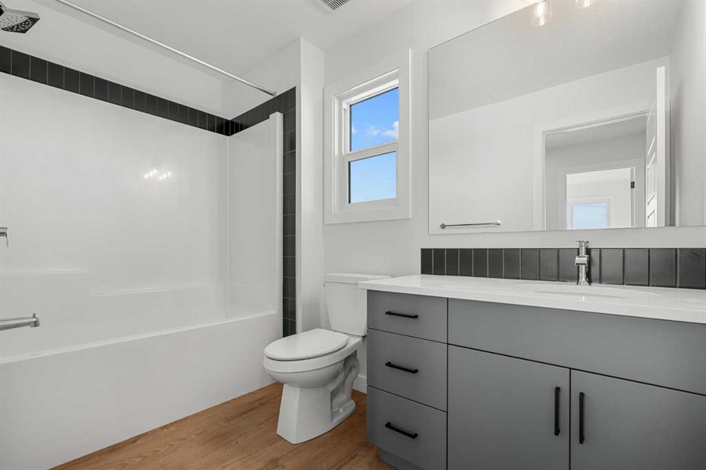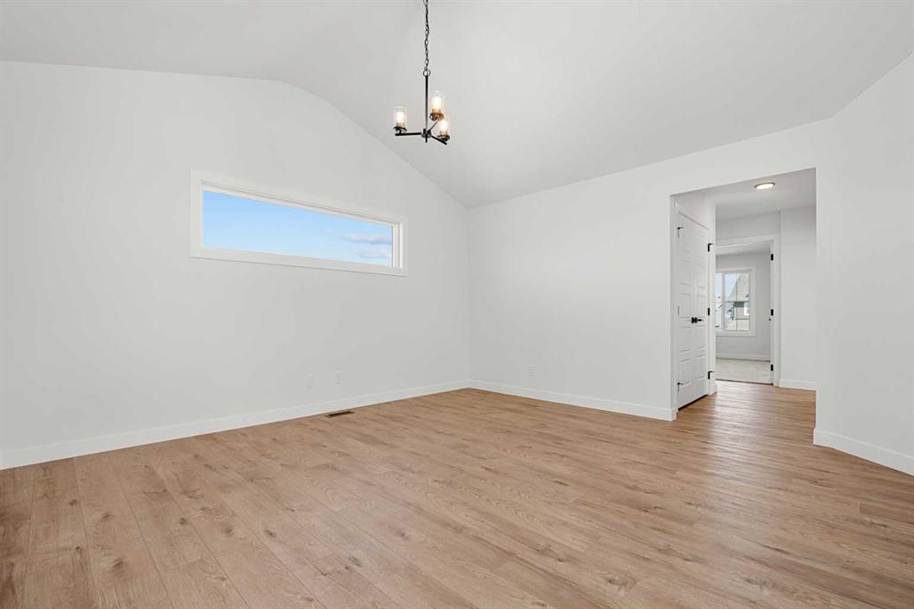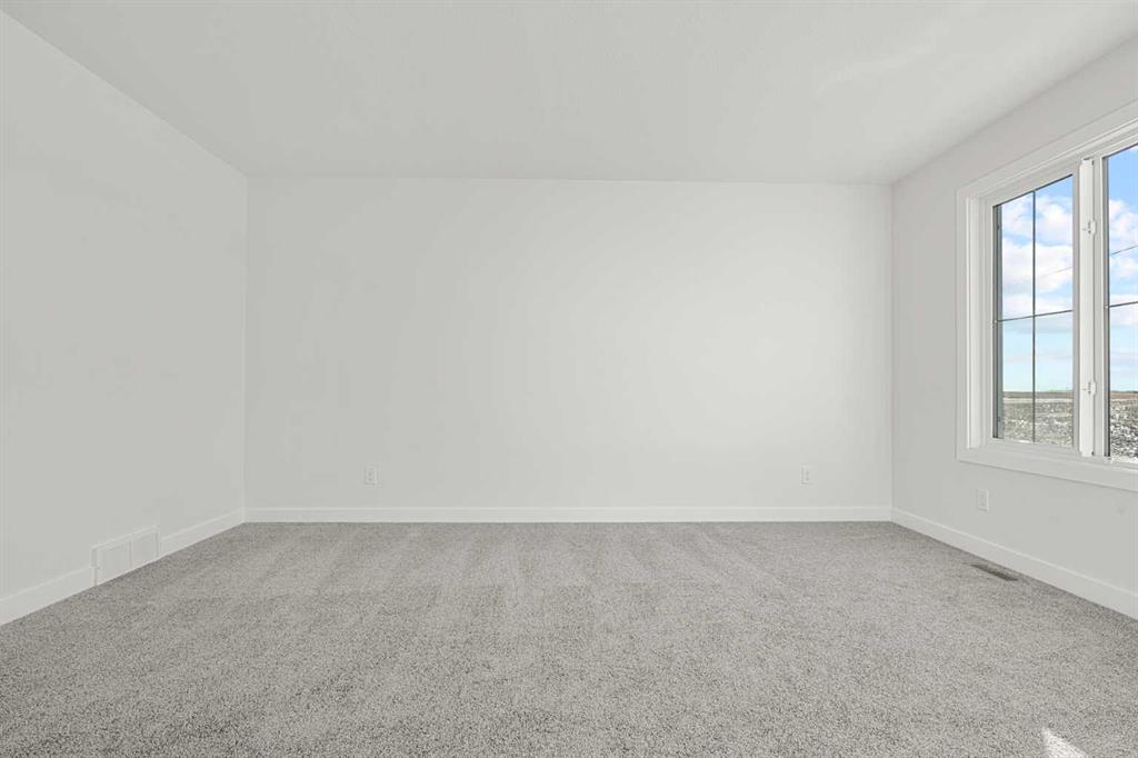 Welcome to 512 Lawthorn Way SE in Airdrie , a beautifully crafted home that offers nearly 2,400 sq. ft. of refined living space, featuring 4 spacious bedrooms and 3 bathrooms in a thoughtfully designed two-storey layout. Perfectly positioned backing onto 40th Avenue with stunning mountain views, this home combines elevated design with everyday functionality. The main floor showcases a modern kitchen complemented by a fully equipped spice kitchen, ideal for entertaining and preparing elaborate meals while keeping the main space pristine. A convenient side entrance provides direct access to the undeveloped basement, offering excellent potential for future development or multi-generational living. Upstairs, the home continues to impress with a bright and expansive bonus room featuring vaulted ceilings, creating an open and airy retreat. The luxurious primary suite includes a spa-inspired 5-piece ensuite with a soaker tub with tiled skirt, separate shower, and private water closet for added comfort and privacy. Luxury vinyl plank flooring in the bonus room and upper hallways adds both durability and modern style. Additional highlights include a beautiful electric fireplace with a paint-grade mantel and numerous upgrades throughout. Ideally located with quick access to Deerfoot Trail, this home places you just minutes from CrossIron Mills Mall, Calgary International Airport, schools, parks, and a wide variety of amenities. A perfect blend of style, space, and convenience, this highly upgraded Home is an exceptional opportunity in one of Airdrie’s growing communities.
