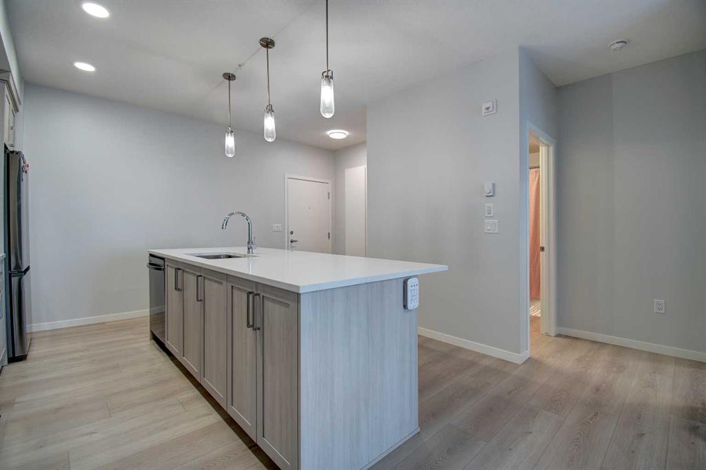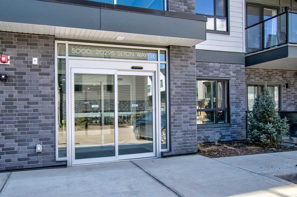Welcome to this beautifully appointed ground floor condo in the vibrant community of Seton. Built in 2025, this modern 1 bedroom, 1 bathroom unit offers stylish and functional living, perfect for first time buyers, downsizers, or investors. Step inside to discover durable luxury vinyl plank flooring throughout and a bright open concept layout. The contemporary kitchen features sleek white quartz countertops, stainless steel appliances including fridge, stove, and dishwasher, and ample cabinetry, making it both elegant and practical. Enjoy the convenience of in unit stacked laundry for added ease. The spacious bedroom is complemented by a well designed bathroom, while the large ground floor balcony provides the perfect outdoor space for relaxing or entertaining. Ideal for those with mobility considerations, this unit offers easy access with no stairs required. Additional highlights include one assigned surface parking stall and a prime location close to shopping, dining, amenities, and transit in one of Calgary’s most sought after communities.