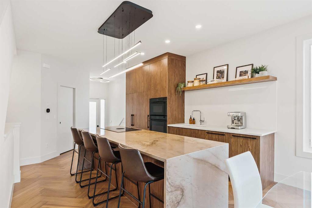 ***OPEN HOUSE Saturday October 11th from 11am – 1pm*** Form. Function. Flow. Welcome home to 514 19th Street NW. This 2 storey semi-detached custom home features 4 bedrooms, 3.5 bathrooms, and single attached garage. This home’s design and lay-out is ideal for couples or young families. With each space flowing seamlessly into the next, and function at its helm, 514 is truly a peaceful haven. As you enter the home, your eyes are naturally drawn to the rear glass sliding patio doors, which extend the living space into the backyard during the warmer months. Upgraded built-in Fisher & Paykel appliances, and thoughtful cabinetry, all add to the everyday ease of being in the gourmet kitchen. The stunning quartzite waterfall island is a natural hub where family and friends will gather, keeping the host central to the party. The herringbone engineered hardwood floors direct you to the living room, where you can relax by the gas fireplace and cozy up with a book (or two). Lounge in your backyard and enjoy the warmth of the fire at the poured in place, custom concrete gas fire table. This home is drenched in sunlight throughout the day, with the primary bedroom awakened by the sunrise in the east, and the front of the home warmed by the sunset in the west. As you ascend to the upper level, the stairwell is brightened by 1 of 3 skylights. A flex space currently utilized as a playroom greets you at the top of the stairs, and can easily be transformed into an office, library, or upper family room. Two well sized bedrooms and a four piece bathroom, where the 2nd skylight is located, complete the west end of the second floor. Moving to the rear of this level, you will find the sanctuary of the primary bedroom. Upon entering, the room is flooded with natural light through the large bright windows. The vaulted ceilings provide a sense of spaciousness, while the fireplace adds warmth and intimacy. Subtly tucked behind pocket doors can be found the walk-in closet, stacked washer and dryer, and spa inspired primary ensuite where the 3rd skylight illuminates the space. Luxuriate in baths in the freestanding tub, and wash away the day’s stresses in the glass enclosed shower. Continue your evening by heading to the lower level, and enjoy the custom built-in bar. The 4th bedroom, four piece bathroom, lounge area, and utility room complete this floor. This home is fantastically located within West Hillhurst: walk in any direction and within 5 minutes you will find a green space and/or playground, the West Hillhurst Community Association, Bowview Outdoor swimming pool (now open!), Dairy Lane Cafe + Pocket Coffee, Queen Elizabeth schools, Made by Marcus, Amato Gelato, and quick access to Memorial Drive, Crowchild Trail, or 16th Avenue to get you anywhere in the city. The 5 and 10 year Alberta New Home Warranty Program are applicable. This home is truly a standout gem that must be seen in person to be fully appreciated.
