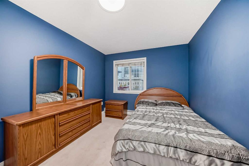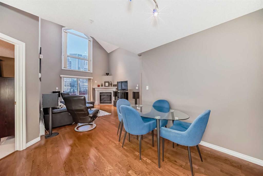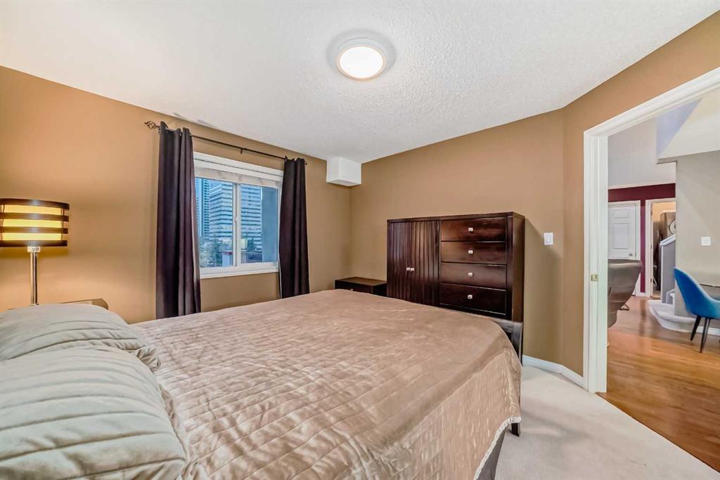 Here’s the rare opportunity to own a PENTHOUSE unit with a SECOND FLOOR LOFT a mere 2 blocks away from the gorgeous pathways and serene views of the Bow river and pathways of Prince’s Island park! Located on the edge of Calgary’s famous Eau Claire neighbourhood, this area provides all the conveniences of downtown living but in a noticeably less busy and peaceful area, removed from the hustle of the downtown core. Tired of constantly looking at units that face directly into the sides of buildings? Unit 514 boasts an unobstructed BRIGHT AND SUNNY view to the SOUTH, looking out into downtown and over the Historic 118-year old Mcdougall Centre with its beautiful park space next to it. But don’t just look at it, the HUGE 14×8 balcony lets you completely immerse yourself and lounge in your surroundings and Calgary’s famous year-round sunlight (note the natural gas hookup for BBQ or Patio heater!). This unit features a wonderful layout that truly makes sense, offering a bedroom and bathroom on each side, with the living room and kitchen located centrally, ensuring privacy for occupants at all times. The living room boasts unbelievable 18.5-foot high vaulted ceilings, something only a true penthouse can offer, with a massive window above the sliding glass door that completely fills the living space with natural light.
