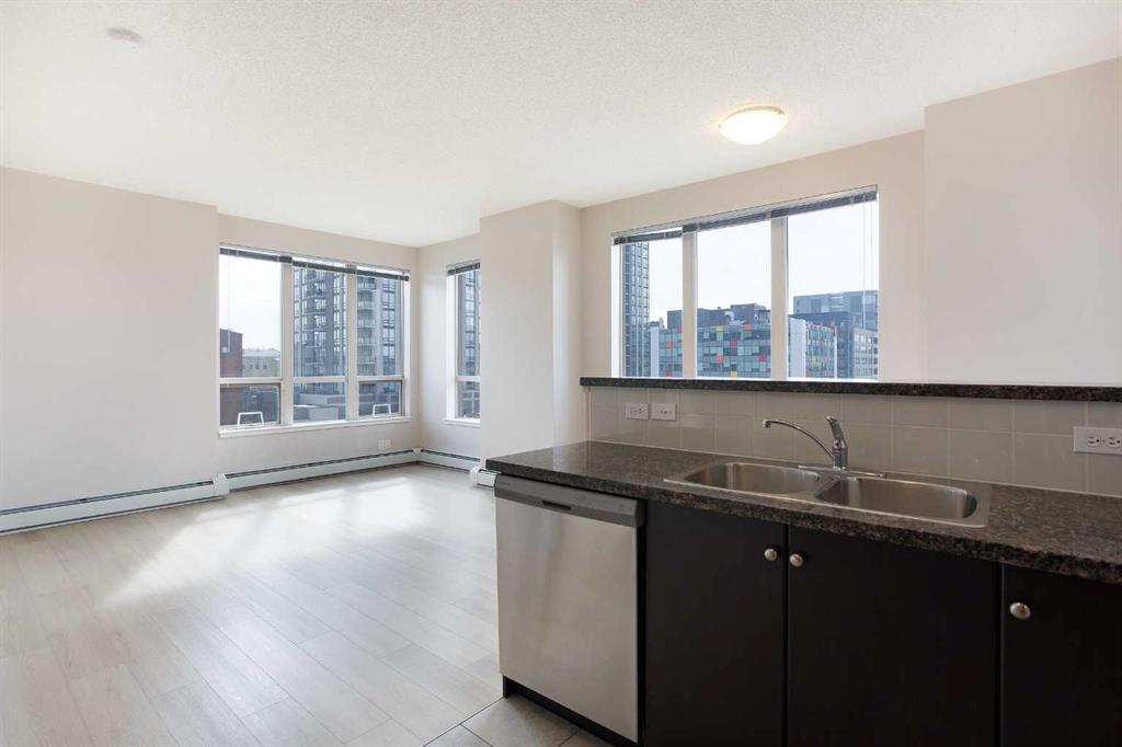 2 BED 2 BATH | CORNER UNIT | SOUTH-WEST FACING | TITLED UNDERGROUND PARKING | CONCIERGE & AMENITIES Welcome to elevated inner-city living in this stylish 2-bedroom, 2-bathroom WEST-facing corner unit in the heart of the Beltline. Recently updated with brand-new Luxury Vinyl Plank flooring throughout, this home offers a modern, low-maintenance lifestyle perfect for busy professionals. One of the best layouts in the building, the smart floorplan places the primary bedroom and second bedroom on opposite sides of the unit, with the kitchen and living room in between—creating ideal separation and privacy for roommates, guests, or a home office setup. The living room enjoys south and west exposure and the balcony faces west—making this an exceptionally bright, sun-filled home throughout the day. The open-concept living space is flooded with natural light from wall-to-wall windows and showcases beautiful west-facing views and stunning sunsets. Step outside to your rare oversized balcony (13 ft x 8 ft), significantly larger than most in the building, offering the perfect space to relax, entertain, or enjoy warm summer evenings. The contemporary kitchen features granite countertops, stainless steel appliances, and a convenient breakfast bar for casual dining or hosting friends. The spacious primary bedroom includes a private 3-piece ensuite, while the second bedroom is generously sized and positioned beside a full second bathroom. In-suite laundry adds everyday convenience. This home includes secure underground parking, and condo fees cover all utilities—gas, water, and electricity—providing exceptional value and predictable monthly costs. Located just steps from grocery shopping (including Co-op), cafés, restaurants, nightlife, transit, and downtown offices, this location is ideal for professionals who want to live, work, and play without the commute. Stylish upgrades, an unbeatable layout, west-facing views, and a standout balcony—this is Beltline living done right.