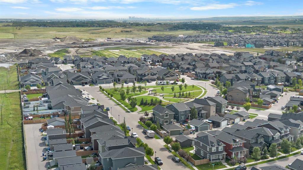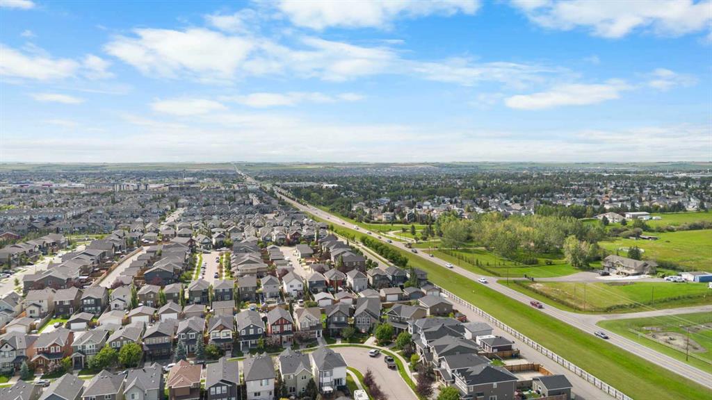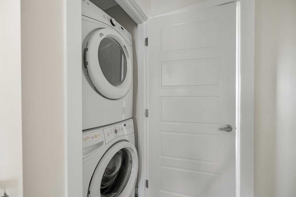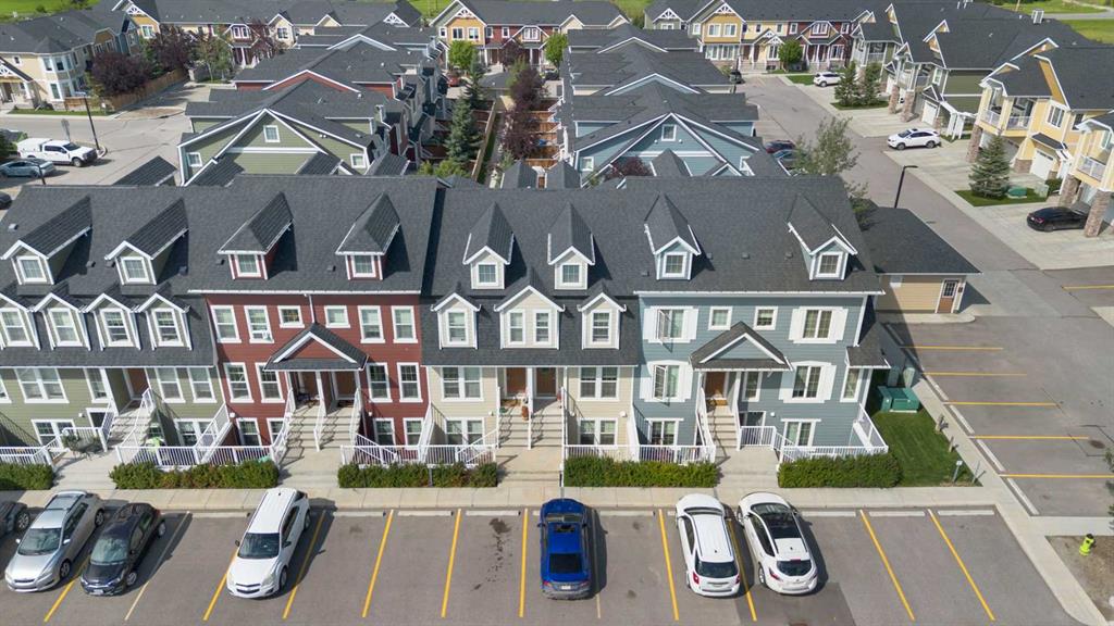 Hello, Gorgeous! Welcome to this beautifully maintained 2-bedroom, 2.5-bathroom townhome in the highly desirable Ravenswood community of Airdrie. Perfect for first-time buyers, downsizers, or investors, this home offers a functional layout, fresh upgrades, and a rare private backyard—ideal for both relaxing and entertaining. The bright, open-concept main floor flows seamlessly from the living area to the dining space and kitchen. The kitchen features a electric stove, dishwasher, and microwave hood fan, plus plenty of counter space for everyday cooking or hosting. A stylish half bath with statement wallpaper adds a touch of designer charm to the main level. Upstairs, you’ll find two spacious bedrooms, each with its own private en suite—now upgraded with beautiful new tile. Additional storage can be found in the attic with a pull down staircase providing access to this incredible storage space. Fresh paint throughout and new light fixtures bring a modern, move-in ready feel to the entire home. Step outside to enjoy your fenced backyard, perfect for BBQs, gardening, or unwinding at the end of the day. This property also includes a dedicated parking stall, washer and dryer, and window coverings. Located in a well-kept complex, Ravenswood offers quiet streets, access to parks and pathways, and close proximity to shopping, dining, schools, and commuter routes into Calgary. HOA fees include snow removal, landscaping, and insurance to the paint for true low-maintenance living. This move-in ready home blends comfort, style, and convenience—book your showing today!