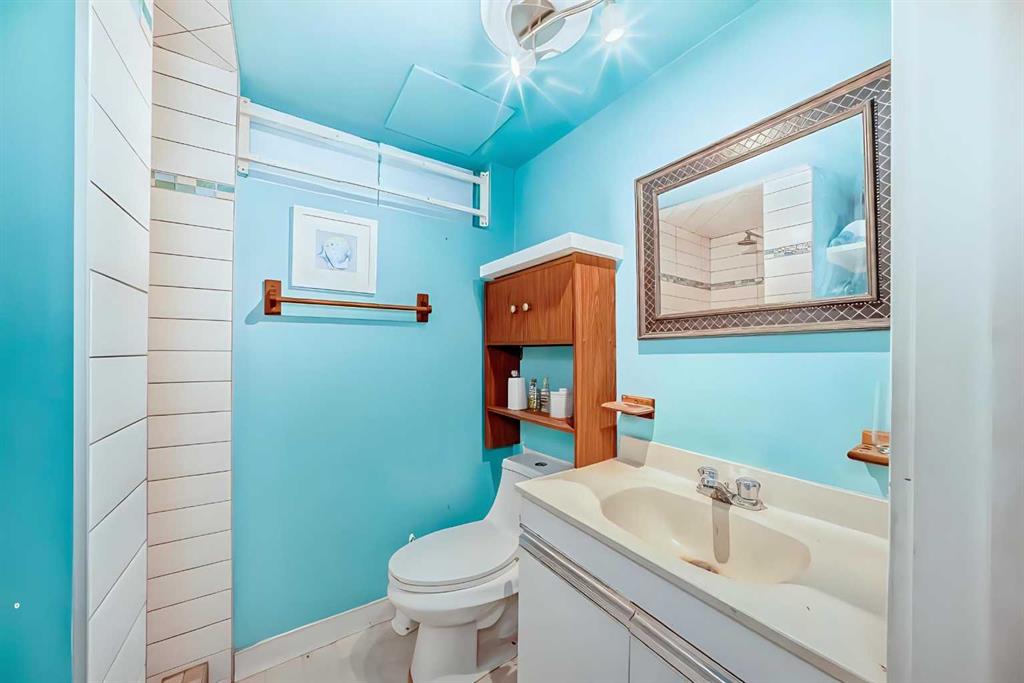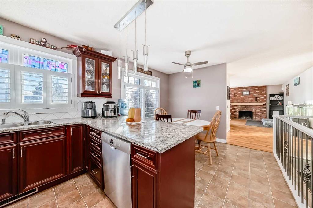 INVESTOERS ALERT!!!! Welcome to Old Town Airdrie—a prime location in the Service Commercial District (CS) that offers real opportunity for developers and savvy buyers. This property sits on a 75 x 120ft lot that could be used in a multitude of different ways for future development, or kept intact as a move-in ready home with a live/work setup. The current improvements consist of a fully developed 1,078 sq ft air-conditioned bungalow that has been extensively upgraded inside and out. On the main level you’ll find two bedrooms with California closets, a large office/den with built-in shelving, and an open-concept kitchen and dining area featuring, SS appliances, a gas stove & granite countertops and a breakfast bar. The front entrance opens to a bright living room with a fully operational brick fireplace and gas lighter, adding both ambiance and warmth. The master bedroom opens directly onto a huge deck, perfect for outdoor entertaining. The main level also includes a fully updated four-piece bath.