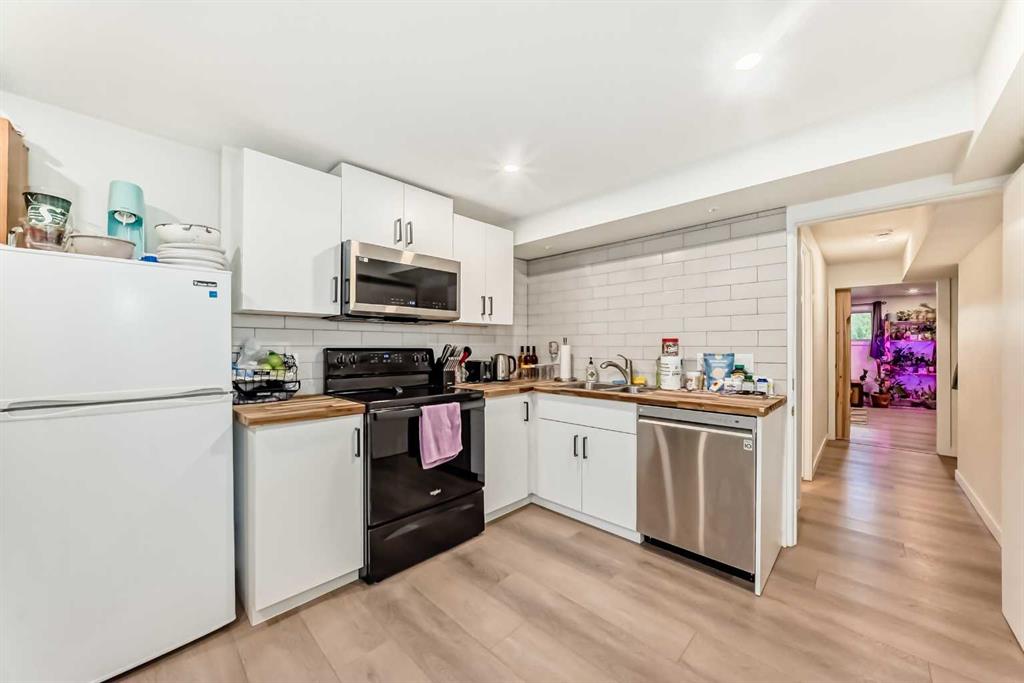 This half duplex is a fantastic opportunity for investors, first-time buyers, or anyone looking for a flexible property with great income potential. Whether you choose to rent out the whole place or live upstairs and rent down, this home offers a smart, move-in-ready setup with plenty of recent upgrades and thoughtful updates throughout. The majority of the renovations were completed in 2020, including the addition of the illegal basement suite, along with new kitchens and bathrooms on both levels, updated flooring, and all new windows. These updates were done with practicality and comfort in mind, making this property an easy one to own without having to worry about major expenses anytime soon. The upper unit features a bright and spacious layout with two good-sized bedrooms and a full four-piece bathroom. The kitchen offers plenty of cabinet space and opens nicely to a large dining area, creating a great setup for everyday living. The living room feels warm and inviting with a corner wood-burning fireplace, perfect for Calgary winters, and easy access to the recently rebuilt composite deck and balcony where you can enjoy your morning coffee or relax in the evening sun. Downstairs, the illegal basement suite has its own private rear entrance and includes one huge bedroom, a full kitchen, a comfortable living area, and a modern bathroom. It’s a great space for extended family, guests, or as a reliable income steam. Out back, there is parking for 3 vehicles plus a storage shed for tools and seasonal items. The property is located on a tree lined street close to shopping, schools, parks, and public transit, making it convenient for both tenants and owners. With all the heavy lifting already done, this home is a low-maintenance option that works well for a variety of buyers. Whether you are adding to your investment portfolio or looking for an affordable way to get into the market, this one is worth a look. Come see it for yourself and appreciate the updates, layout, and flexibility this property offers.