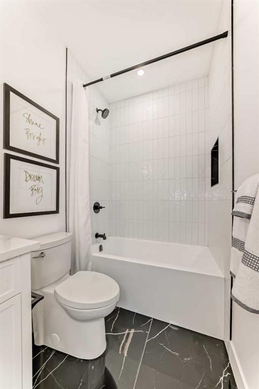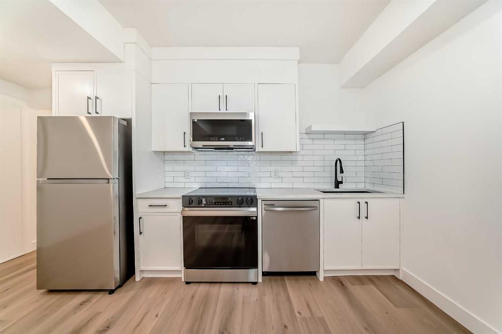 The fully finished legal basement suite offers excellent flexibility and income potential, showcasing vinyl plank flooring, a spacious recreation room, an eat-in kitchen with Samsung stainless steel appliances, two bright bedrooms, a full bathroom, and laundry hookups.