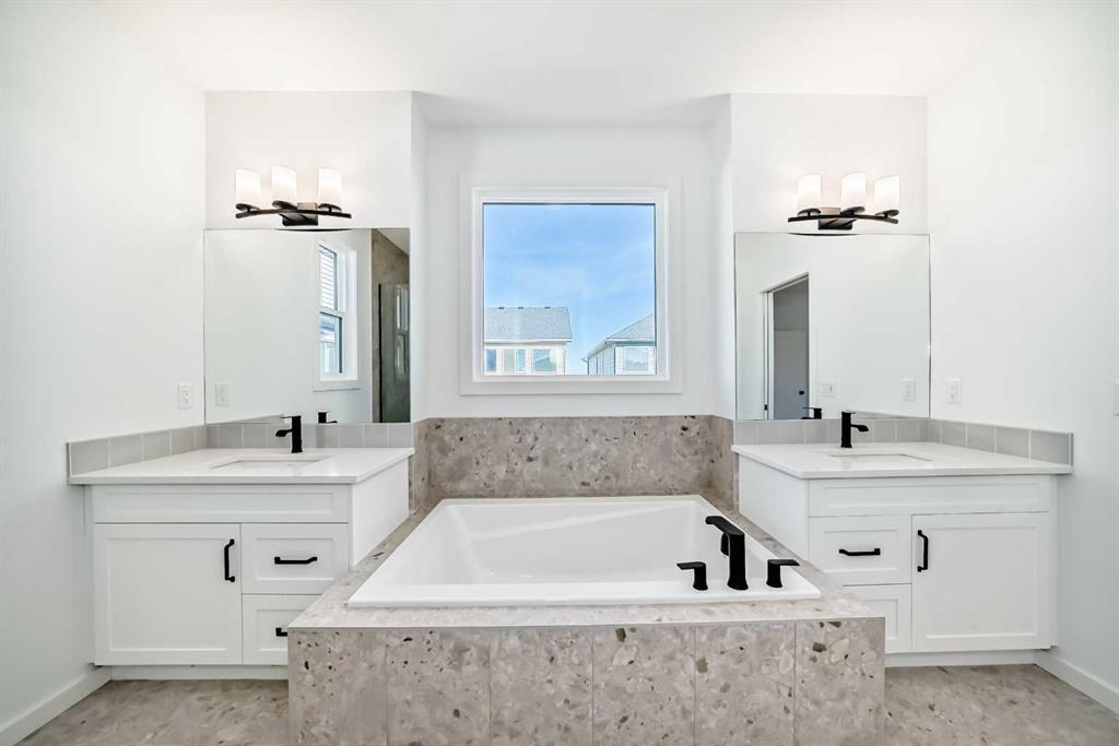Upstairs, the layout keeps earning its keep. EVERY BEDROOM HAS ITS OWN WALK-IN CLOSET, so storage never turns into a negotiation. The BONUS ROOM catches the afternoon light — far enough from the bedrooms to feel like a reset, close enough to stay connected. And the primary ensuite is built for real mornings, not staged ones: DOUBLE SINKS, a DEEP SOAKER TUB, space to breathe. Laundry’s right where it should be, complete with another Silgranit sink, because details like that are what end up mattering most.
