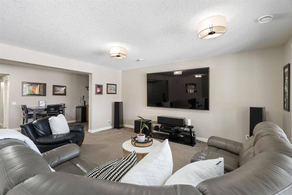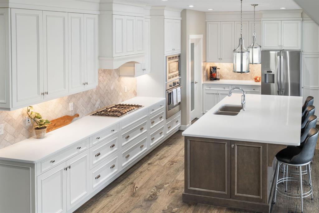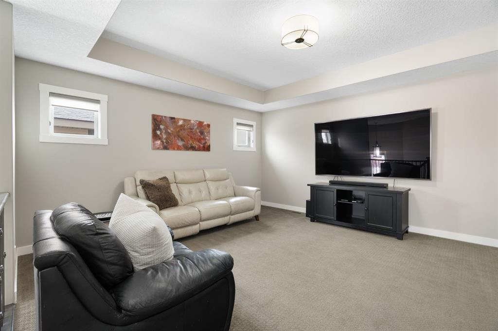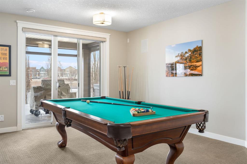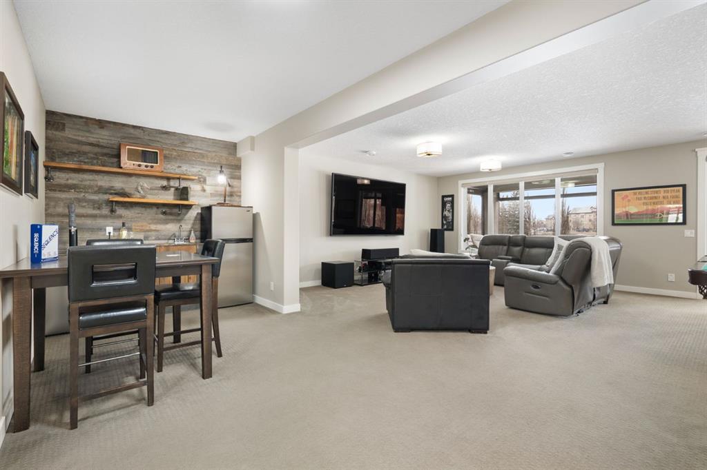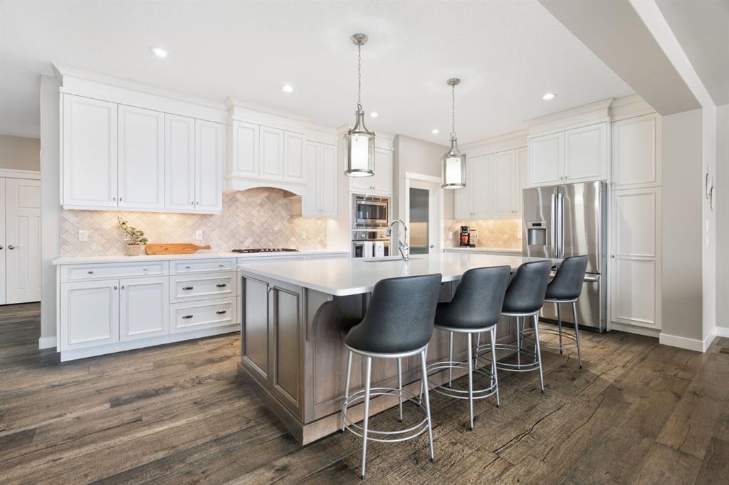 Located in the Estate section of Mckenzie Towne on a quiet street with a picturesque pond as your backdrop, this custom-built home features four bedrooms and four bathrooms across nearly 4,400 sq. ft. of developed living space. Arriving at 52 Elgin Estates View, you will be impressed by the stunning curb appeal, Gemstone lighting, and an oversized, heated triple-car garage with epoxy floors. Inside, the formal foyer leads to a generous main-floor office with French doors. The stunning white kitchen is equipped with quartz countertops, a six-burner gas range, stainless steel Bosch appliances, and a walk-through pantry. Adjacent to the kitchen is a spacious living room with a gas fireplace and a large dining area. The back of the home is flooded with natural light through expansive windows, offering access to a vinyl deck with beautiful east-facing views of the pond. The main floor is completed by a large mudroom with direct garage access and a powder room with granite countertops. Upstairs, you will find a bonus room, two secondary bedrooms, and a five-piece bathroom. The primary bedroom offers impressive proportions and additional pond views. The primary ensuite serves as a perfect retreat with a double vanity with granite countertops, a large tub, and a spacious standalone shower. A large walk-in closet provides direct access to the laundry room, which is also accessible from the hallway. The walkout basement is an entertainer’s dream, featuring a wet bar, a large entertainment space for movie nights or sports, and room for a pool table. This level also includes a fourth bedroom, a four-piece bathroom, and additional storage. Outside, the ground-floor covered patio features stamped concrete and an automatic bug screen for summer comfort. The professionally landscaped backyard includes an in-ground sprinkler system and direct access to walking paths around the pond. Additional features include dual-zone furnaces, two AC units, new hot water tank (2025), Gemstone lighting and Hunter Douglas blinds. This property is located on a quiet street and is just steps from a large soccer field, all the shopping and amenities one could need and easy access to major road ways all while being nestled on a quiet pond.