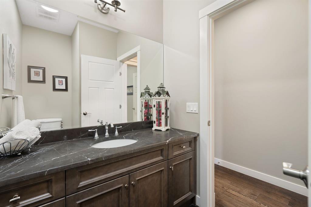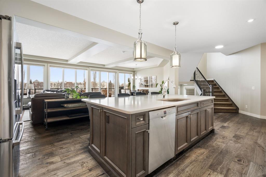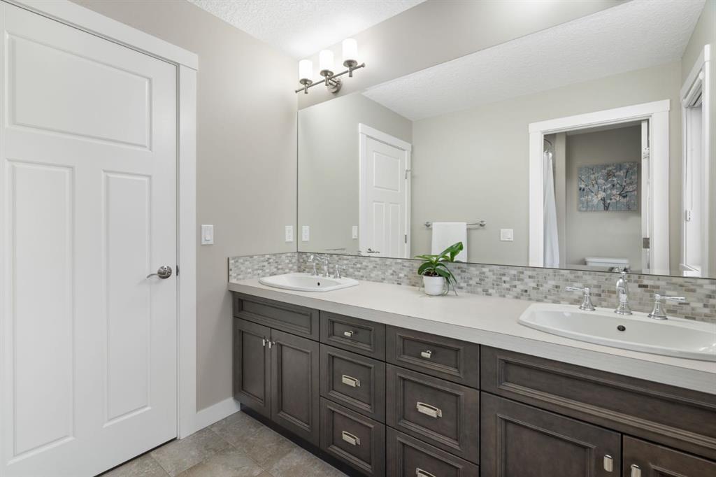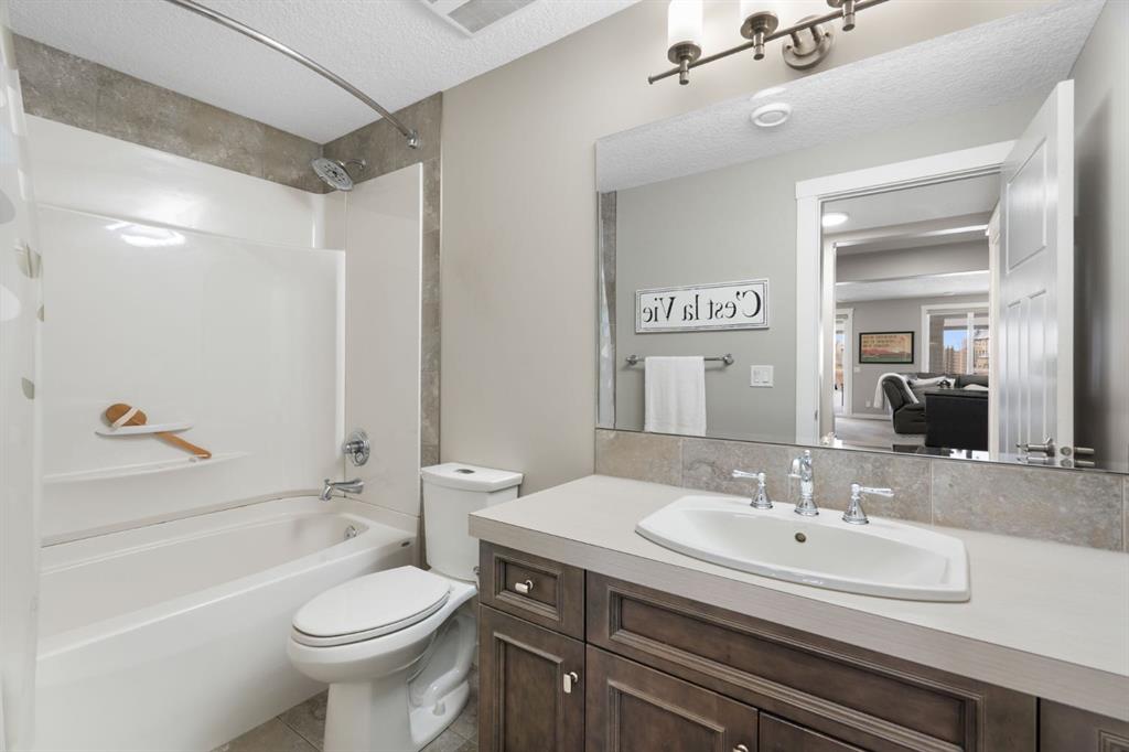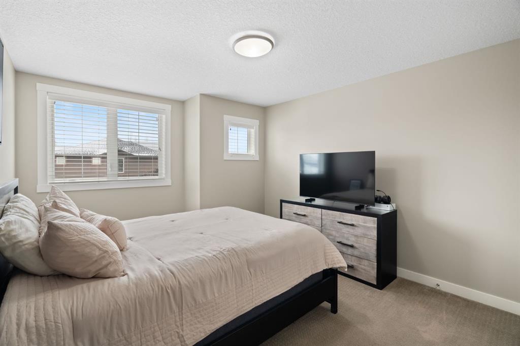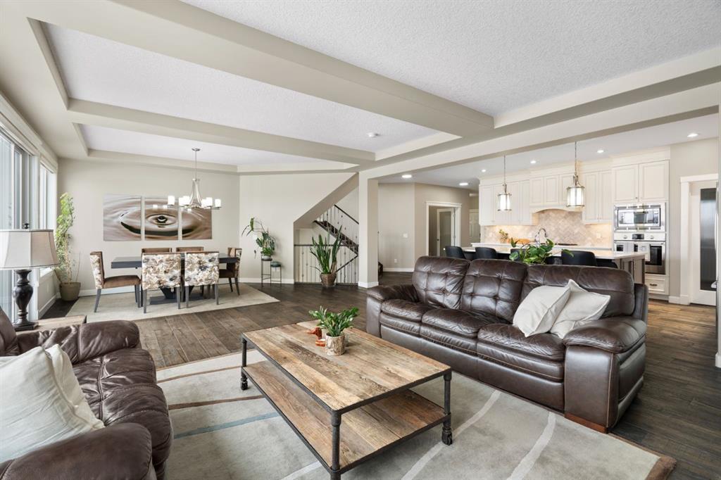 Located in the Estate section of Mckenzie Towne on a quiet street with a picturesque pond as your backdrop, this custom-built home features four bedrooms and four bathrooms across nearly 4,400 sq. ft. of developed living space. Arriving at 52 Elgin Estates View, you will be impressed by the stunning curb appeal, Gemstone lighting, and an oversized, heated triple-car garage with epoxy floors. Inside, the formal foyer leads to a generous main-floor office with French doors. The stunning white kitchen is equipped with quartz countertops, a six-burner gas range, stainless steel Bosch appliances, and a walk-through pantry. Adjacent to the kitchen is a spacious living room with a gas fireplace and a large dining area. The back of the home is flooded with natural light through expansive windows, offering access to a vinyl deck with beautiful east-facing views of the pond. The main floor is completed by a large mudroom with direct garage access and a powder room with granite countertops. Upstairs, you will find a bonus room, two secondary bedrooms, and a five-piece bathroom. The primary bedroom offers impressive proportions and additional pond views. The primary ensuite serves as a perfect retreat with a double vanity with granite countertops, a large tub, and a spacious standalone shower. A large walk-in closet provides direct access to the laundry room, which is also accessible from the hallway. The walkout basement is an entertainer’s dream, featuring a wet bar, a large entertainment space for movie nights or sports, and room for a pool table. This level also includes a fourth bedroom, a four-piece bathroom, and additional storage. Outside, the ground-floor covered patio features stamped concrete and an automatic bug screen for summer comfort. The professionally landscaped backyard includes an in-ground sprinkler system and direct access to walking paths around the pond. Additional features include dual-zone furnaces, two AC units, new hot water tank (2025), Gemstone lighting and Hunter Douglas blinds. This property is located on a quiet street and is just steps from a large soccer field, all the shopping and amenities one could need and easy access to major road ways all while being nestled on a quiet pond.
