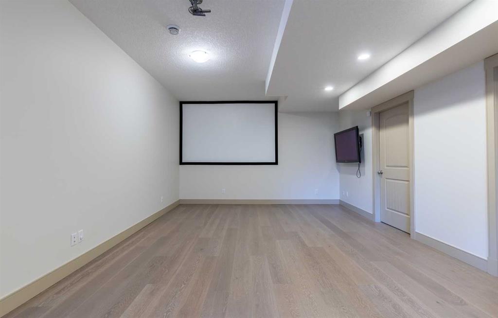 The fully finished lower level is equally impressive, featuring 9-feet ceilings, two more bedrooms, a modern bathroom with double vanity, a home theatre, and mechanicals upgraded with dual furnaces and dual hot water tanks.