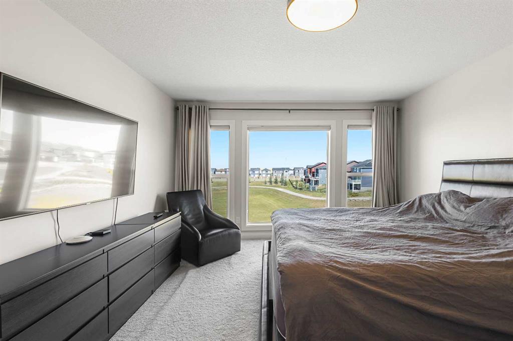 The gourmet kitchen showcases sleek cabinetry, premium appliances, and an oversized island designed for both function and entertaining. Flowing seamlessly into the dining and living areas, the main floor is an entertainer’s dream, bathed in natural light and framed by sweeping park views.