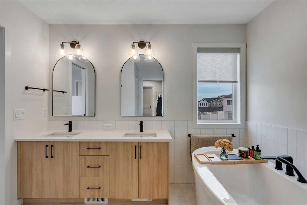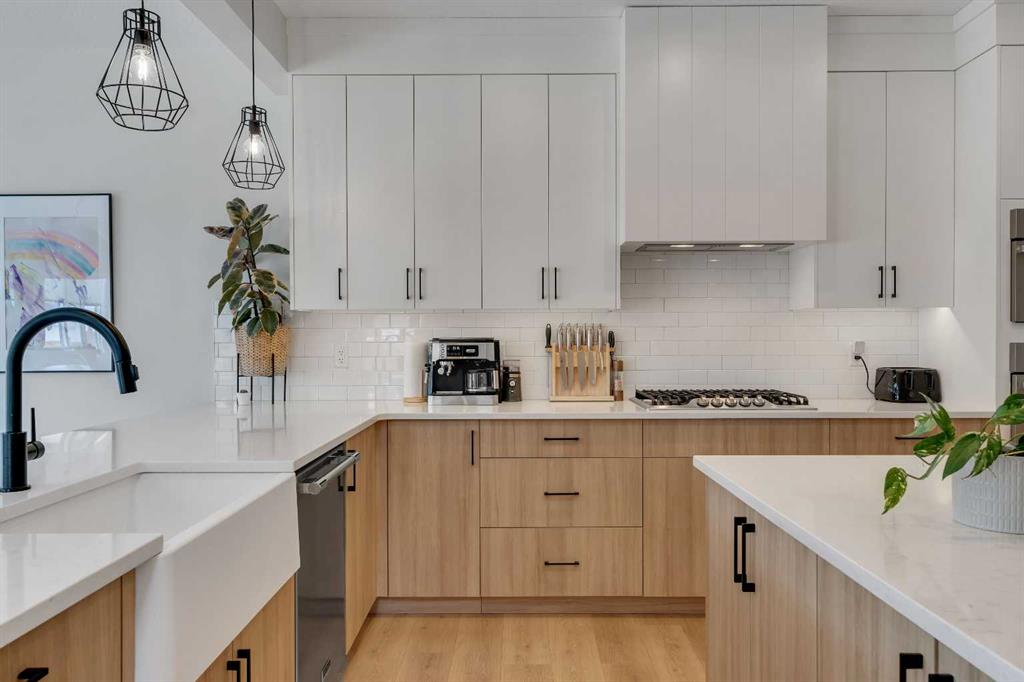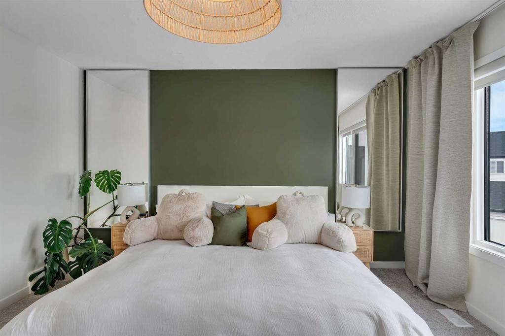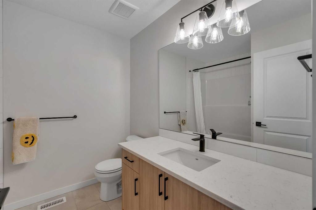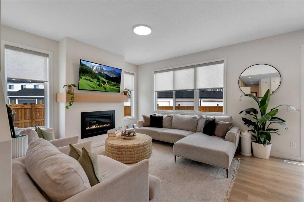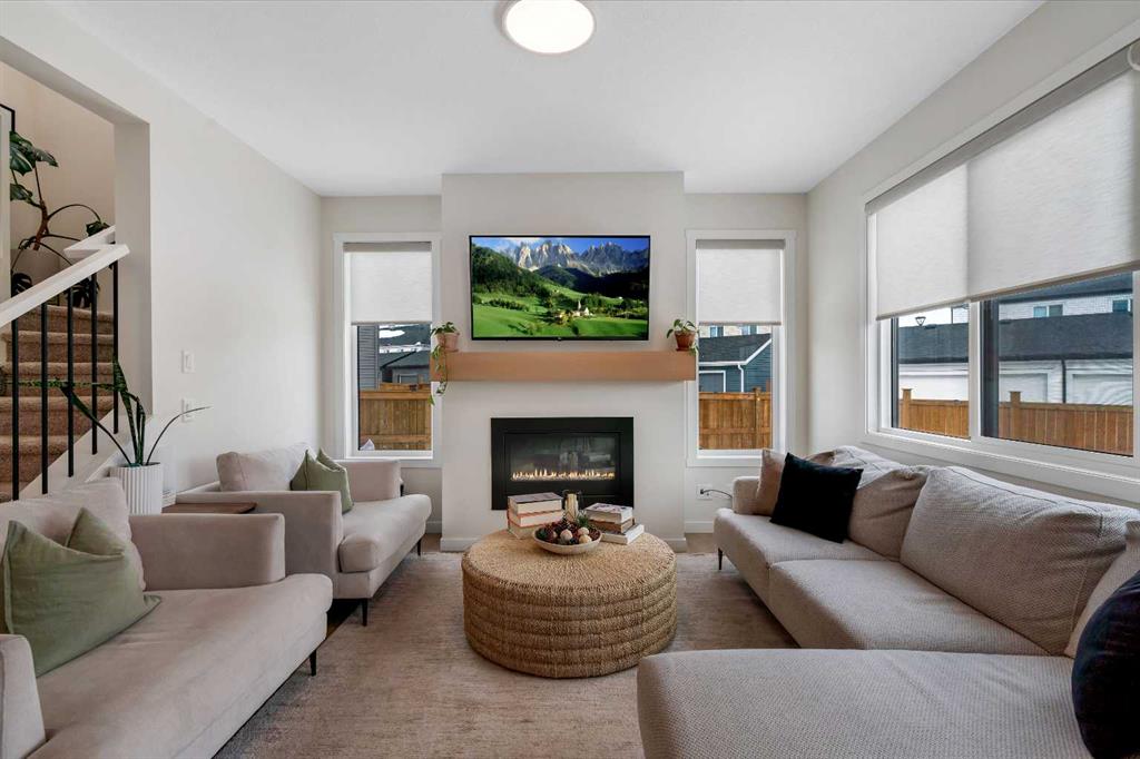Welcome to 52 Sugarsnap Way SE, a beautifully appointed Baywest built home located in Rangeview—Calgary’s one-of-a-kind Garden-to-Table community. This masterpiece sits on one of the largest lots in Rangeview. A rare opportunity to own a nearly new home where all the upgrades are already complete, and the hard work is done. The main floor is thoughtfully designed for both everyday living and entertaining. The chef’s kitchen is the heart of the home, anchored by a flush eating bar and center island, and surrounded by two-tone full-height ceiling cabinets, quartz countertops, a custom hood fan, a gas cooktop, a wall oven and microwave, and a walk-in pantry finished with custom wood shelving. Premium lighting, upgraded plumbing fixtures, and tasteful window coverings elevate the space. A bright dining nook sits just off the kitchen, while the great room offers warmth and comfort with a gas fireplace and expanded patio doors that lead to the backyard—perfect for indoor-outdoor living. A main-floor office adds flexibility for remote work or study, while a stylish two-piece bathroom and a welcoming front foyer complete this level. Upstairs, the primary retreat is a true sanctuary, featuring a luxurious five-piece ensuite with dual sinks, quartz countertops, a fully tiled shower with upgraded glass, a freestanding soaker tub, and a spacious walk-in closet with dual sections for optimal organization. Three additional bedrooms are generously sized and share a four-piece bathroom with quartz countertops, while the conveniently located laundry room includes an upgraded washer and dryer and sink for everyday ease. The fully finished basement expands your living space with a large recreation room, an additional bedroom, and a four-piece bathroom—ideal for guests, teens, or a home gym setup. Outside, enjoy the benefits of a fully landscaped yard with fencing, sod, and window coverings already in place, saving you time and expense compared to building new. Additional highlights include central air conditioning, a water treatment system, rod iron stair railings, and a double attached oversized garage. The home is even roughed-in for solar, offering future-forward efficiency. This home delivers the best of brand-new construction without the wait—every upgrade thoughtfully selected, every detail complete, and every space ready to be enjoyed.
