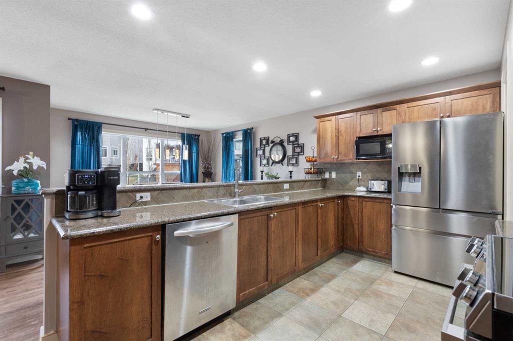 Discover this charming 5-bedroom family home, a perfect blend of character, style, and warmth. Not your typical white-walled house, it exudes personality with moody tones and unique details that make it stand out. Boasting almost 2,200 sqft above grade, this spacious residence offers plenty of room for the whole family. The beautifully appointed kitchen seamlessly connects to the dining and living areas, creating an ideal space for gatherings. Featuring 3.5 bathrooms, there’s comfort and convenience throughout. The fantastic backyard backs onto a serene green space, providing a private outdoor retreat. Located in a family-friendly neighbourhood, this home is within walking distance of a school, a strip mall, and shopping, and offers easy access to the main road in Okotoks. Original owners have cared for this special property—schedule your viewing today!