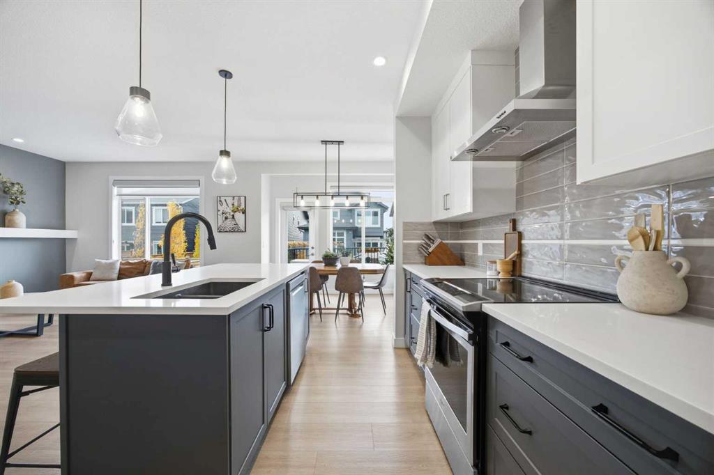 Welcome home to a place where craftsmanship, comfort, and family connection come together. Every detail in this thoughtfully designed home has been carefully curated to blend style and function. The main floor impresses with 10’ ceilings, 9’ doors, and durable LVP flooring throughout. The upgraded kitchen showcases timeless two-tone cabinetry extending to the ceiling, white quartz counters, a granite sink, and a convenient walk-through pantry, gas range hook up if you prefer a gas stove option. Overlooking a spacious dining area and an inviting family room with a beautiful stone-surround fireplace, this open design is ideal for gatherings both large and small. A wide 4-foot staircase leads to the upper level, where vaulted ceilings highlight a grand bonus room—perfect for family movie nights or quiet evenings in. The primary suite is a true retreat featuring double sinks, a tiled shower, a relaxing soaker tub, and a generous walk-in closet. The upper-level laundry room adds everyday convenience, 2 generously sized bedrooms and a main bath with oversized counter with separated shower. 9’ ceilings on upper and basement levels, knockdown ceilings throughout, and the comfort of air conditioning, this home offers a bright, open, and elevated feel. The newly finished basement adds flexibility with waterproof laminate flooring, an open area easily converts into a bedroom with the addition of barn doors if you choose, basement is complete with a 4-piece bath with dual access from both the room and main area. Step outside to enjoy a poured concrete patio, deck, and storage shed. The extended driveway and oversized garage provide ample space and functionality. A home where timeless design, quality finishes, and family living come beautifully together. Building Envelope Warranty until April 30, 2026 and Structural Warranty until April 30, 2031.