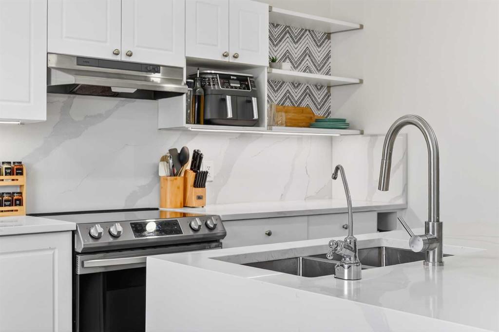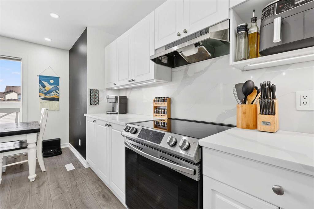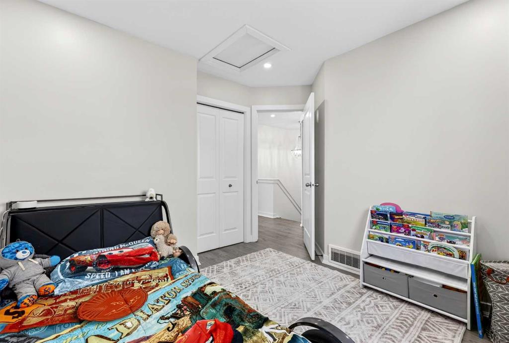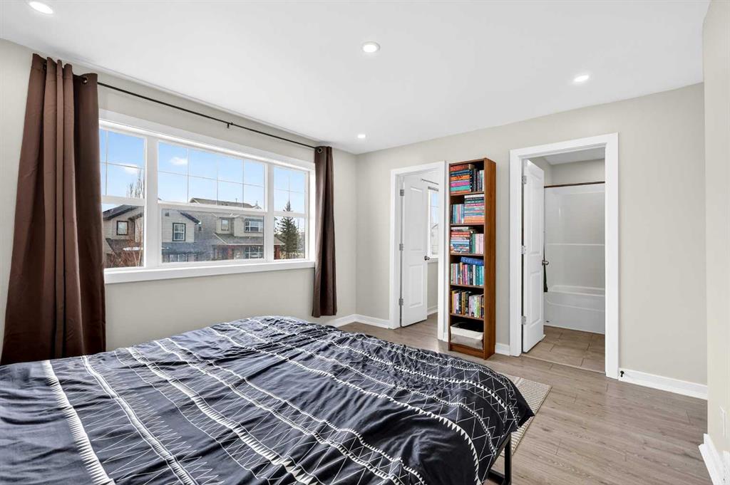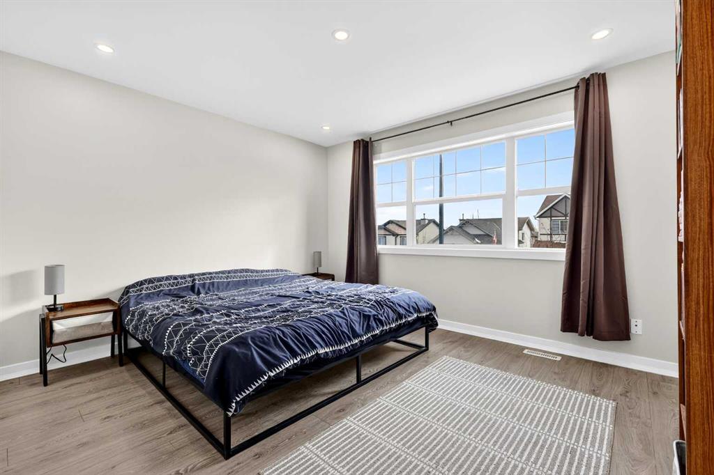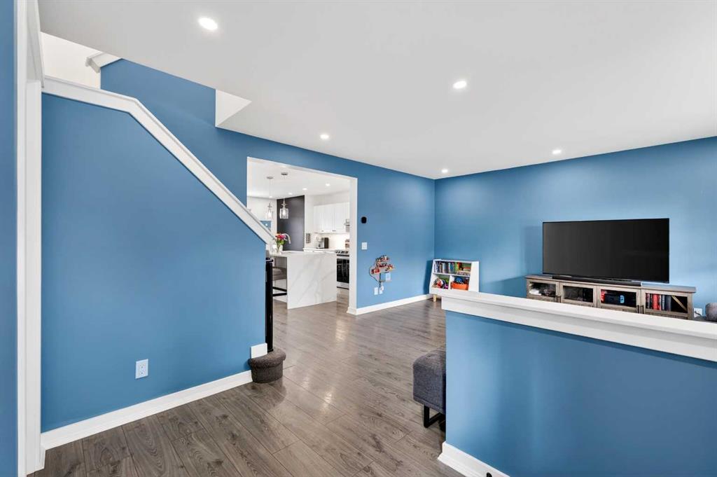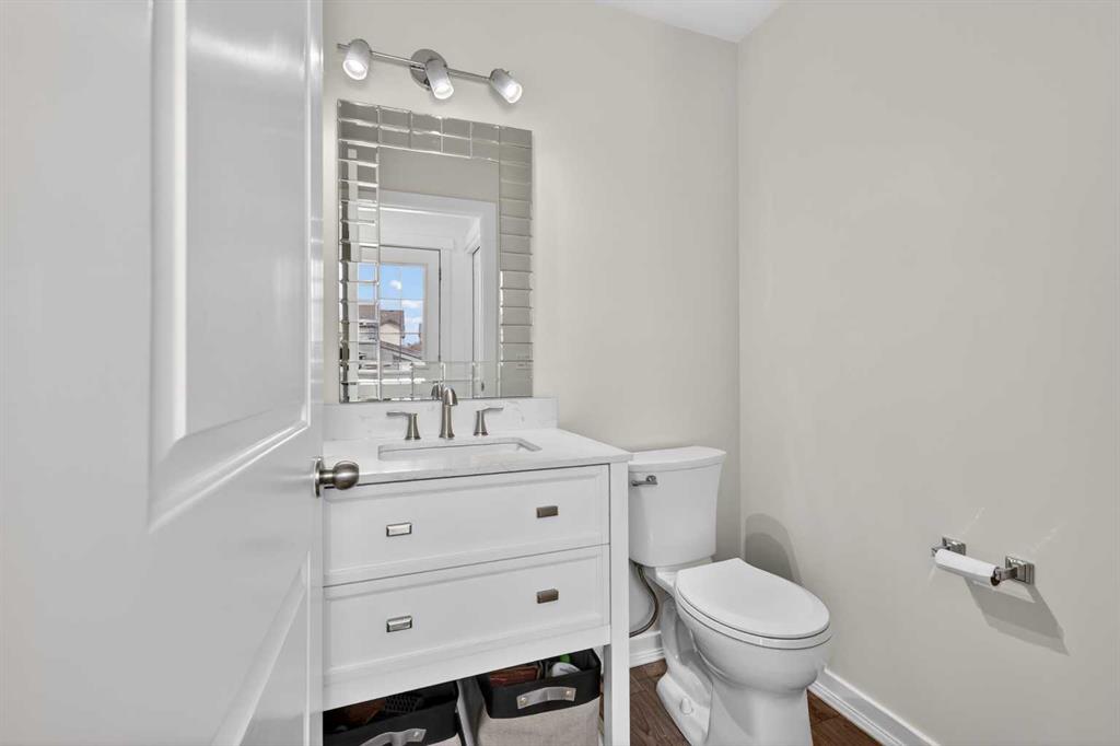 Open House Sunday April 12th 11:00 am – 1:00pm. Start each day on the expansive south-facing front porch where sunshine and neighborhood charm set a welcoming tone. Positioned kitty-corner to a green space and a walking path, this move-in ready home blends everyday comfort with immediate access to outdoor enjoyment. Step inside to an open-concept main level where durable laminate flooring and added pot lighting enhance both function and brightness. Relaxation is invited in the living area where oversized windows draw natural light inward, shaping a comfortable setting suited to quiet evenings or time spent with guests. Effortlessly prepare meals in the beautiful, chef’s dream kitchen where quartz counters, a waterfall island and stainless-steel appliances bring together style and practicality. Hosting is simplified in the adjacent dining area that keeps conversation flowing while maintaining clear sightlines across the main level. Daily routines are easily organized at the rear mudroom, where a privately tucked away powder room lets you easily clean up upon entry. The laminate flooring carries through to the upper level with no carpet, contributing to easy maintenance and a cohesive look. At the end of the day, recharge in the primary retreat that accommodates a walk-in closet and a private ensuite for a true owner’s escape. Two additional bedrooms introduce flexibility for family living, overnight visitors or a dedicated workspace, while a full 4-piece bathroom completes the upper level. Plan future possibilities in the unfinished basement that presents generous storage along with space ready for customization. Enjoy time spent outdoors on the large 2-tier deck that encourages barbecues and seasonal downtime while the fenced yard gives kids and pets room to play freely. Park vehicles securely in the double detached garage accessed from the paved back lane, adding everyday convenience. Phenomenally located within walking distance to nearby shops, pathways and parks while quick connections to schools and Yankee Valley Boulevard support an easy commute. Truly an outstanding location for this beautiful, move-in ready home!