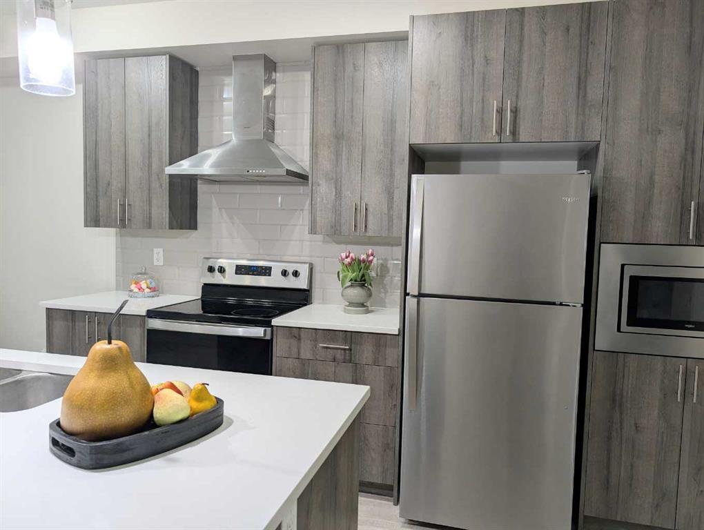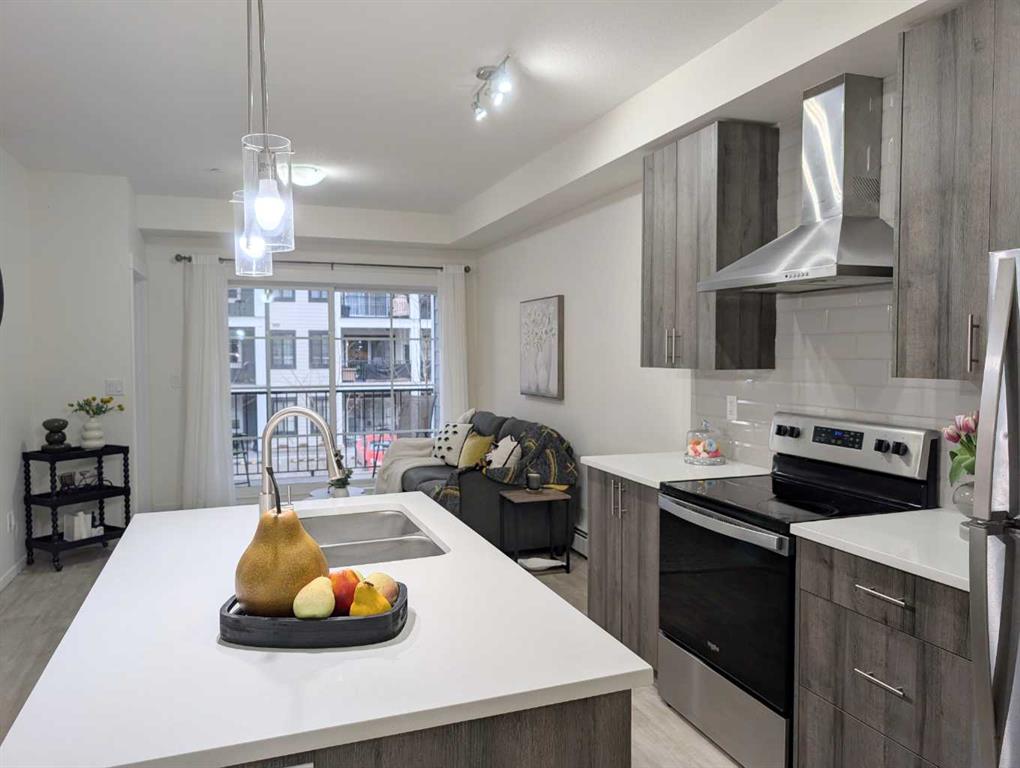 Beautiful 2-BED, 2-BATH condo with TWO TITLED PARKING SPACES in the highly desirable community of Legacy. This unit is situated on the second floor of the Legacy Park II complex, in building 5000. It features an open-concept design in the main living area. The kitchen is equipped with upgraded full-height cabinets, stainless steel appliances, a chimney-style hood fan, and quartz countertops, including on the island. The main living spaces are finished with luxury vinyl plank flooring, while both bedrooms are carpeted. The master bedroom includes a private en-suite bathroom, and the second bedroom has easy access to a full guest bathroom. The unit comes with TWO TITLED PARKING SPOTS: one underground stall and one surface spot with a view of your patio. This condo is in an excellent location, close to schools (All Saints High School), public transit, shopping, and major routes like Macleod Trail, Stoney Trail, and Deerfoot Trail, making it convenient to get anywhere in the city.
