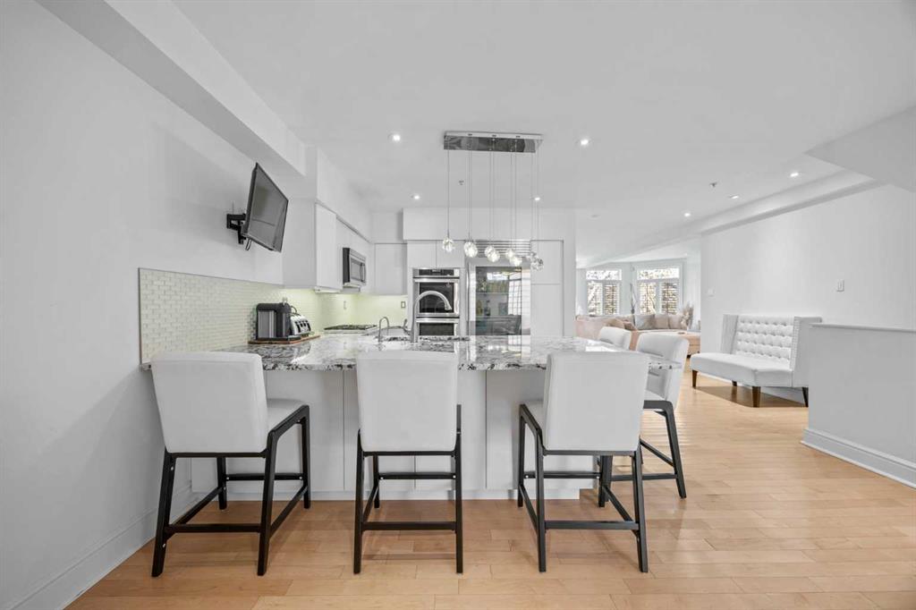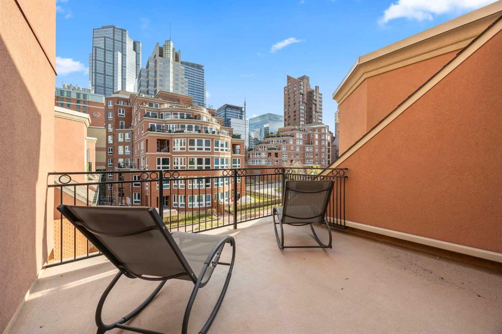 LOCATION, LUXURY, LIFESTYLE — Welcome to the Crown Jewel of Prince’s Island Estates. Experience the epitome of refined urban living in this extraordinary RIVERFRONT TOWNHOME ideally situated in the heart of PRESTIGIOUS Eau Claire. This exclusive executive END UNIT is THE premier unit offering unmatched sophistication, privacy, and panoramic CITY & RIVER VIEWS from every level. Boasting over $250,000 in HIGH END renovations, this residence combines modern elegance with timeless design. You will LOVE the 4 expansive balconies that are the LARGEST in the development and the DIRECT PRIVATE access from your 2 UNDERGROUND PARKING STALLS DIRECTLY into this home. A gated front entry ensures heightened privacy and security, while the vibrant energy of downtown Calgary is mere steps away — enjoy instant access to the Bow River pathways, world-class dining, upscale boutiques, and an endless array of amenities. A private front patio welcomes you into a bright main floor where style and function blend seamlessly. The chef-inspired kitchen is a masterpiece, featuring striking GRANITE countertops, high-end stainless steel appliances including a GAS range and professional-grade refrigerator, chic pendant lighting, a bar fridge, and extensive full-height custom cabinetry. An elegant formal dining area flows into a grand living room with a feature marble accent wall, creating an ideal space for entertaining guests in style. Every inch of this home has been meticulously crafted to impress. Upstairs, the second level hosts two generously-sized bedrooms, each with ample closet space and fully renovated spa-inspired bathrooms complete with IN FLOOR heating, modern tile work, granite counters, and luxury finishes. The primary suite features its own private balcony overlooking tranquil river paths. The third level offers a versatile bonus room — perfect as a home office, media room, or 3rd bedroom — along with not one, but two spectacular balconies. One offers sweeping downtown skyline views, while the other is a sprawling private terrace backing onto Prince’s Island Park + the seller has engineering approval that this deck can SUPPORT A HOT TUB!! Welcome to your own personal oasis. Homes like this do not come up often!! Don’t miss this amazing opportunity to own your DREAM HOME in one of Calgary’s most coveted communities. This unique property features a full time property manager & grounds keeper + ALL UTILITIES are included in your condo fees!!